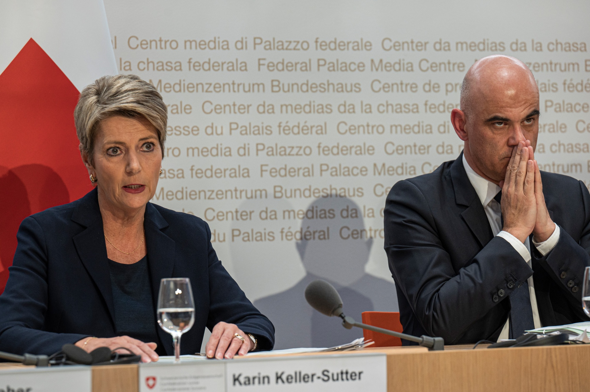 瑞士财政部长(自由民主党)卡琳·凯勒-苏特(Karin Keller-Sutter)(左)和瑞士总统(社会党)阿兰·贝塞(Alain Berset)在3月19日关于瑞银收购瑞士信贷的新闻发布会上。摄影师:Pascal Mora/Bloomberg“他们非常愤世嫉俗地打这张牌,尤其是人民党,因为通常他们支持大银行,”日内瓦大学全球研究学院院长雷内·施沃克(Rene Schwok)说。“这非常瑞士,因为我们都接受它:你可以属于政府,但随后可以批评它。”