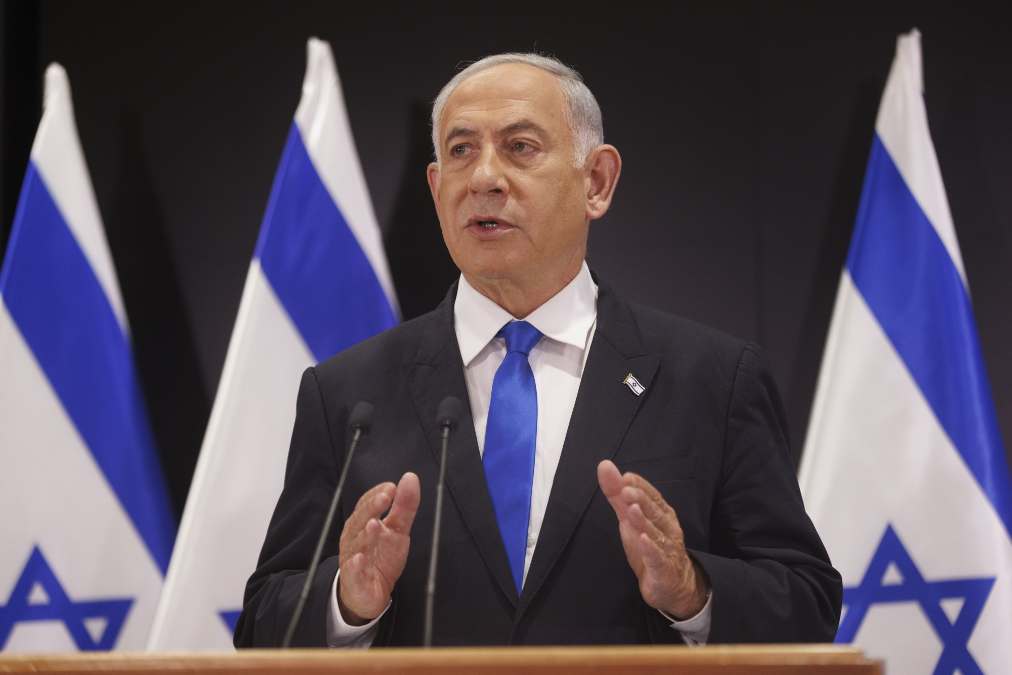 本雅明·内塔尼亚胡在以色列特拉维夫举行的新闻发布会上发言,日期为4月10日。