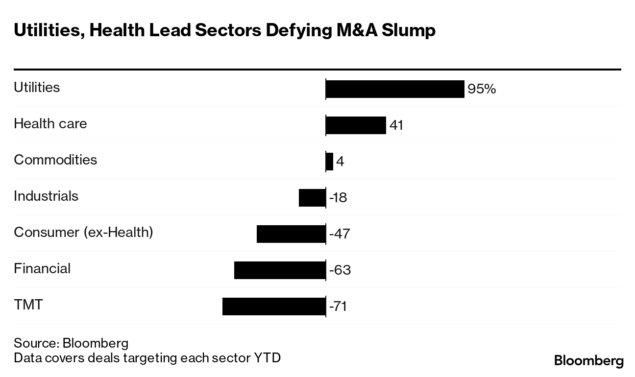 - 今年交易活动仍然下降47%,达到6870亿美元,但各个领域有更多潜在的大宗交易,这表明并购正在回升。