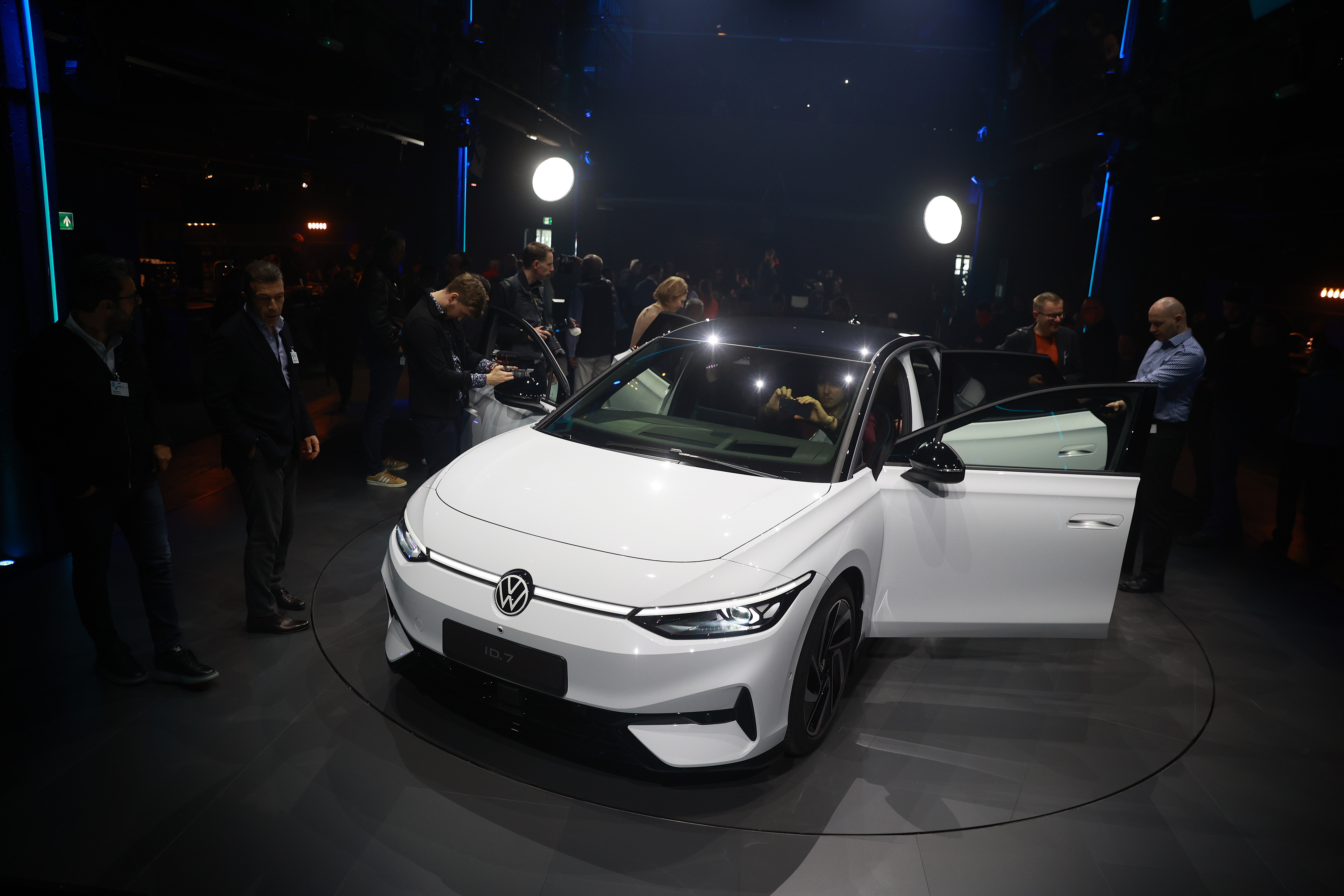 这款宽敞的 ID.7 起价不到60,000欧元(66,000美元),标志着大众与特斯拉的Model 3以及一系列中国初创公司竞争的重要努力。在周一在柏林和上海的发布会上,大众强调了从辅助停车到其15英寸屏幕的功能。它还提供了一个标准的增强现实显示,将信息投射到驾驶员的视野中,语音激活控制,辅助停车和变道。这款车型是大众基于其新的MEB电动车平台推出的第一款轿车,单次充电最多可行驶700公里。