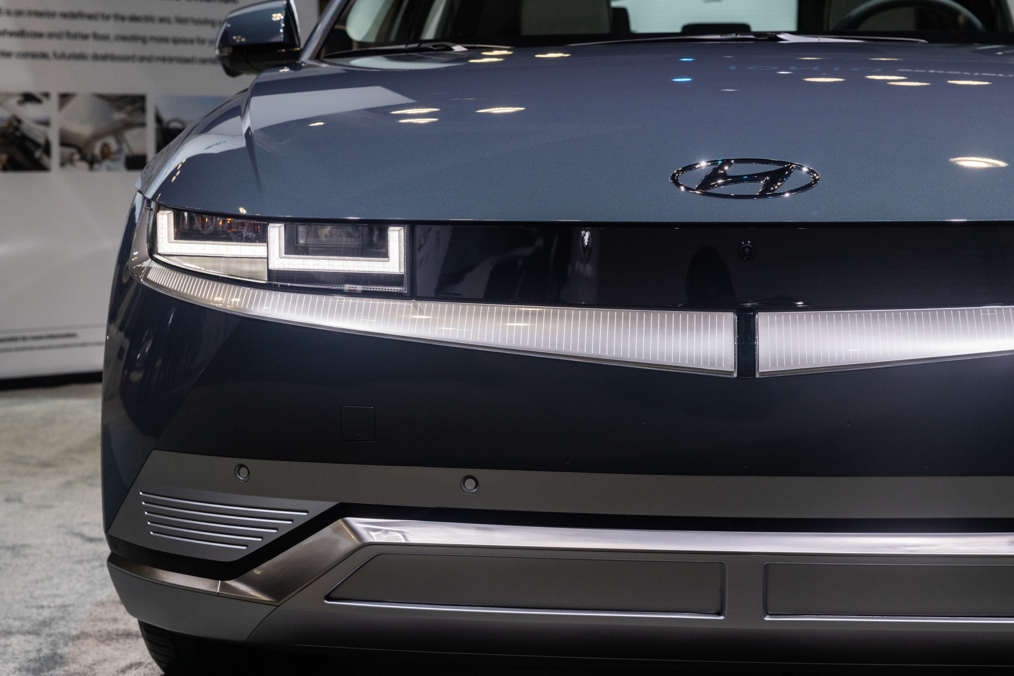一辆现代Ioniq 5电动运动型多用途车在2022年纽约国际车展上展出。