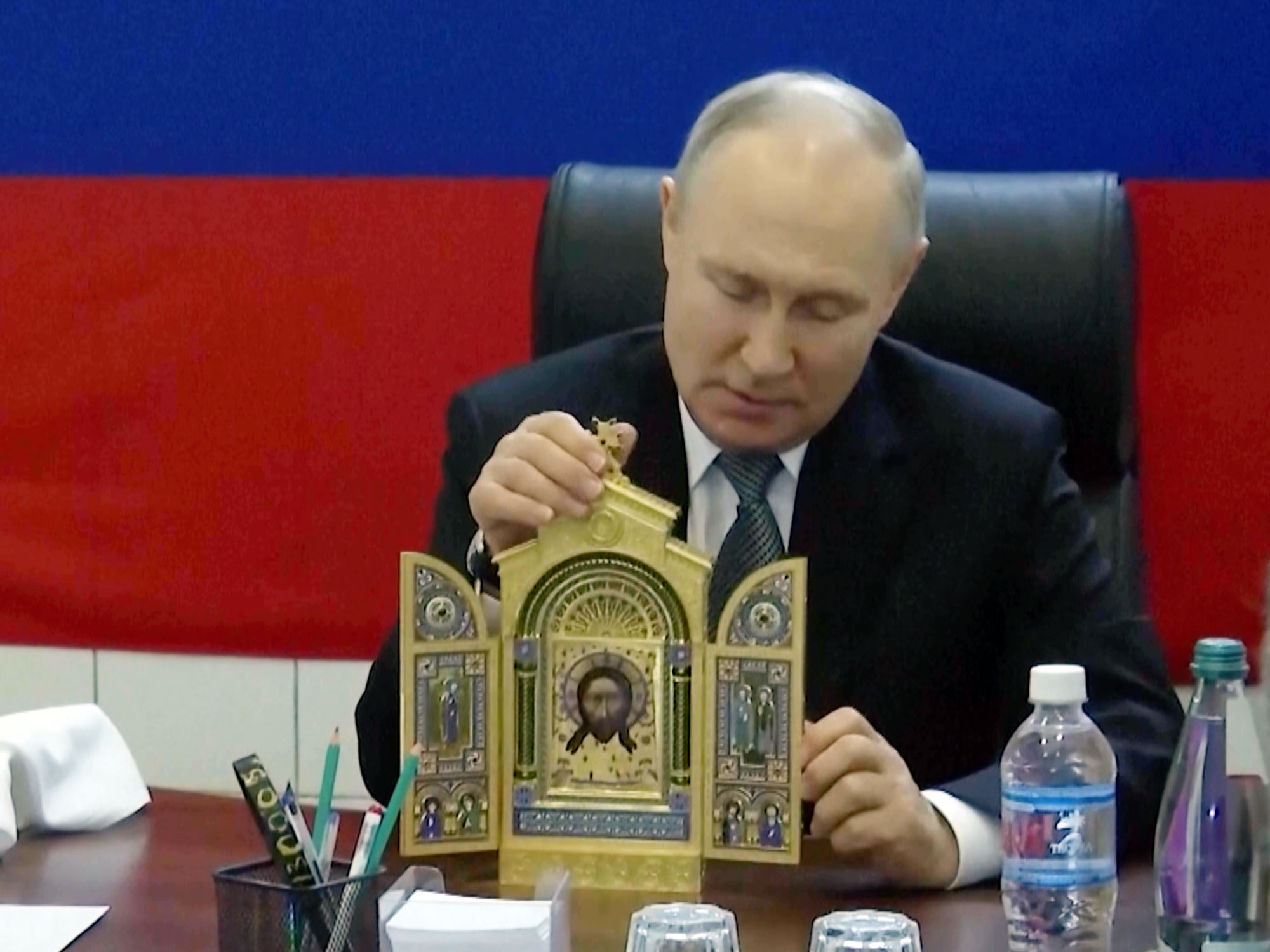 普京在访问期间拿着一幅圣像的副本。来源:普尔斯普特尼克克里姆林宫克里姆林宫发言人佩斯科夫表示,对卢甘斯克和赫尔松地区的访问发生在周一,据官方通讯社塔斯报道。