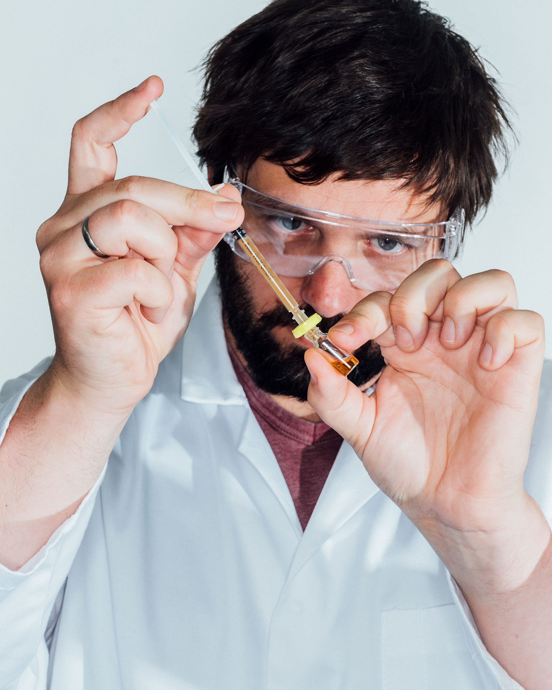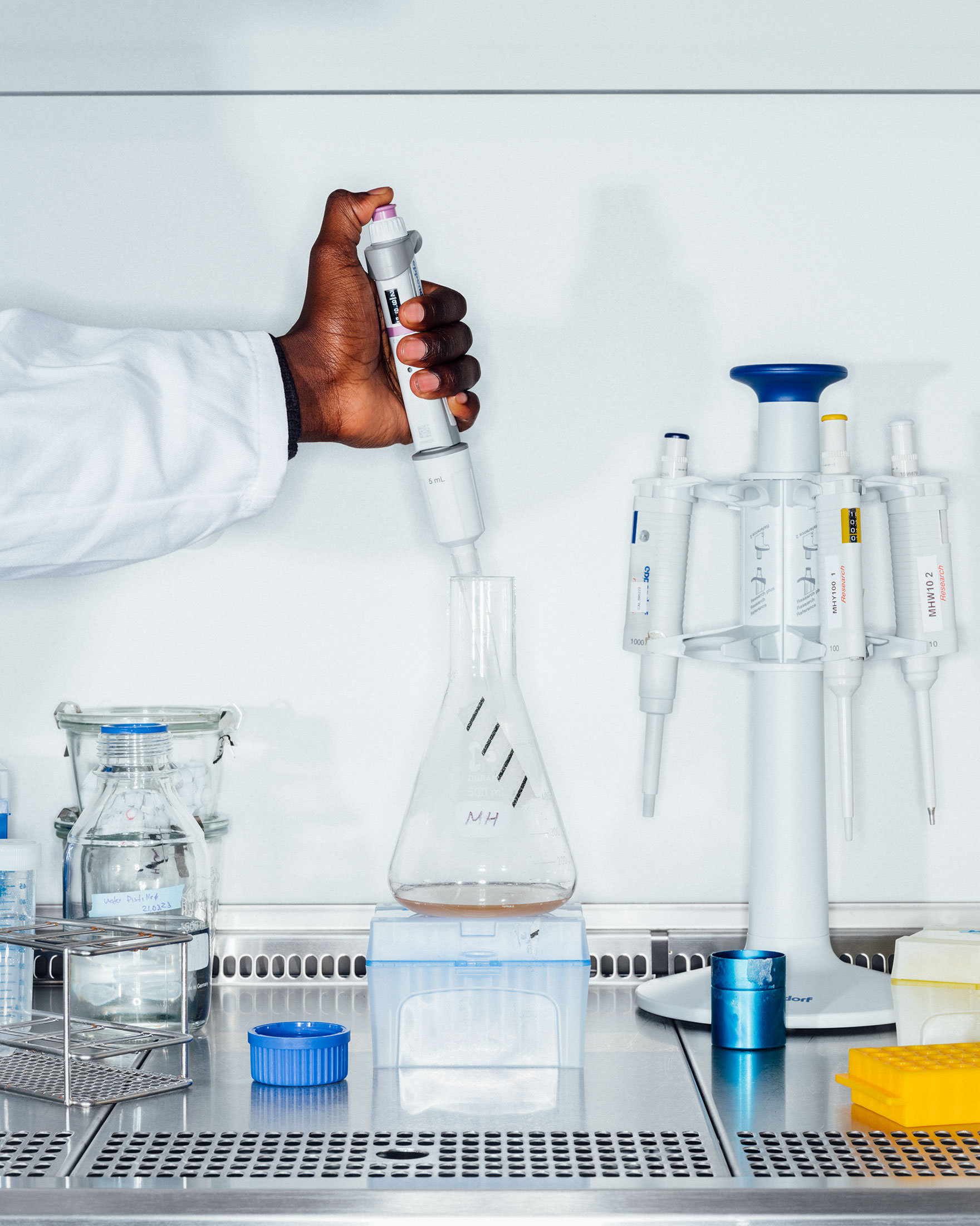 科学家乔尔·索格森(Joel Thogersen)于2023年3月23日在德国汉堡MicroHarvest实验室测试一瓶细菌。
