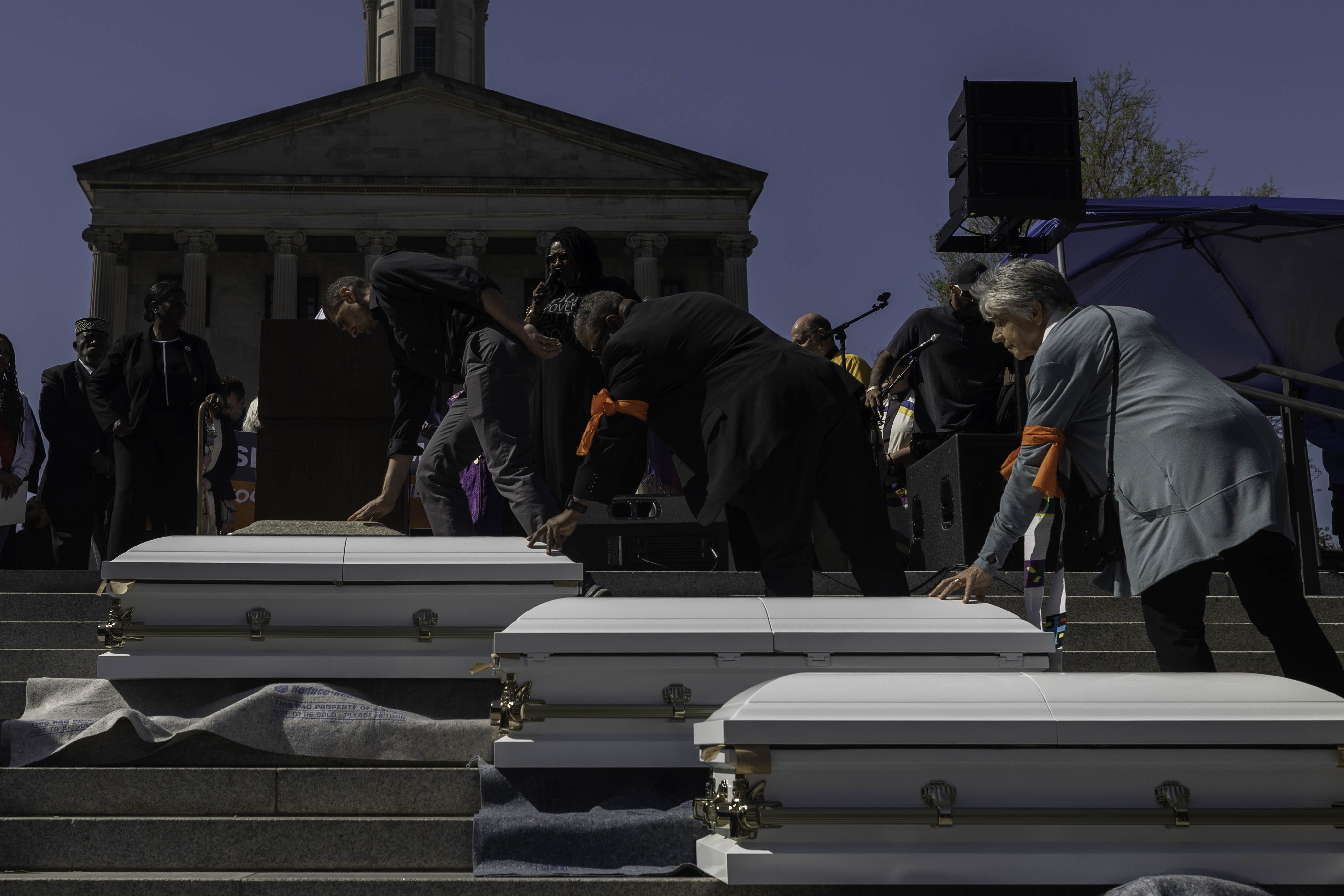演讲者在纳什维尔市的一次集会上触摸纪念因枪支暴力而丧生的灵柩,日期为4月17日摄影师:Alex Kent/Bloomberg尽管许多人表现得好像疫情已经结束了,但世界卫生组织官员表示,新冠病毒的主要奥密克戎变种产生了一个新版本,他们正在密切监测。它被称为Arcturus,可能比早期版本更容易传播。它是否更危险尚待确定。在美国,卫生监管机构已经授权为老年人和其他高风险人群提供额外的双价冠状病毒疫苗加强针。全球范围内,世卫组织每天报告大约300例与新冠病毒相关的死亡病例。