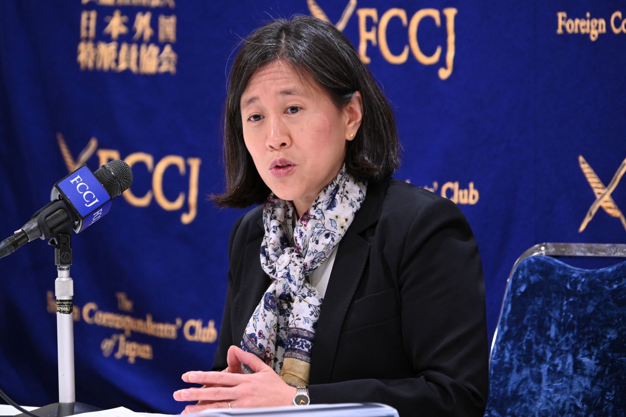 4月20日,凯瑟琳·泰在东京。摄影师:Kazuhiro Nogi/AFP/Getty Images她表示,美国并不打算将北京与美国或全球经济脱钩。