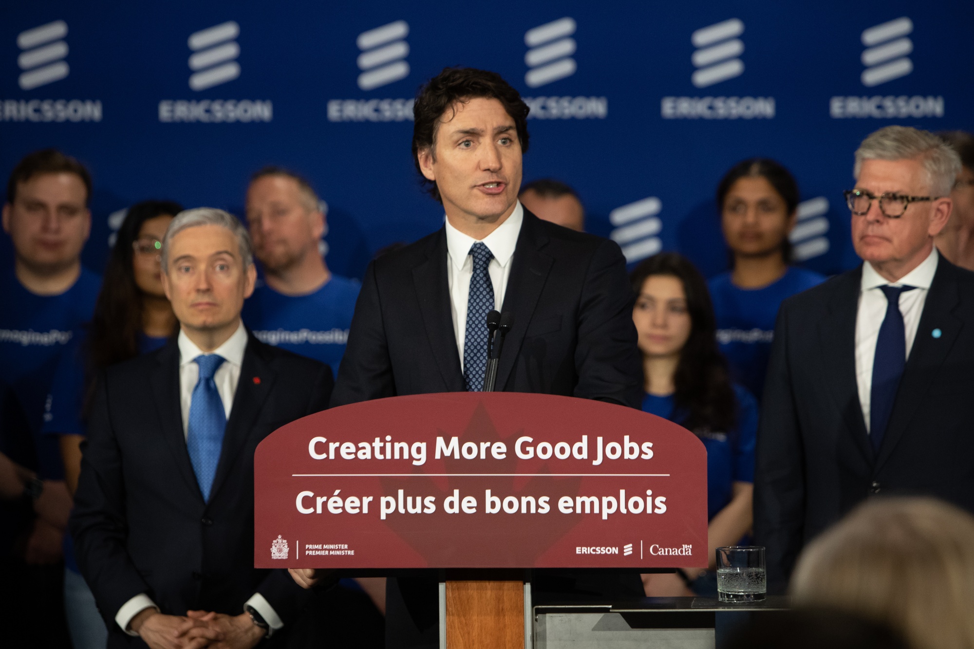 弗朗索瓦-菲利普·香槟(François-Philippe Champagne)(左)在4月17日渥太华举行的新闻发布会上听贾斯汀·特鲁多(Justin Trudeau)讲话。摄影师:大卫·卡瓦伊(David Kawai)/彭博社加拿大总理贾斯汀·特鲁多的政府同意提供补贴,可能超过130亿加元(97亿美元)的十年期,以获得大众汽车股份公司(Volkswagen AG)在欧洲之外的第一家电动汽车电池工厂。