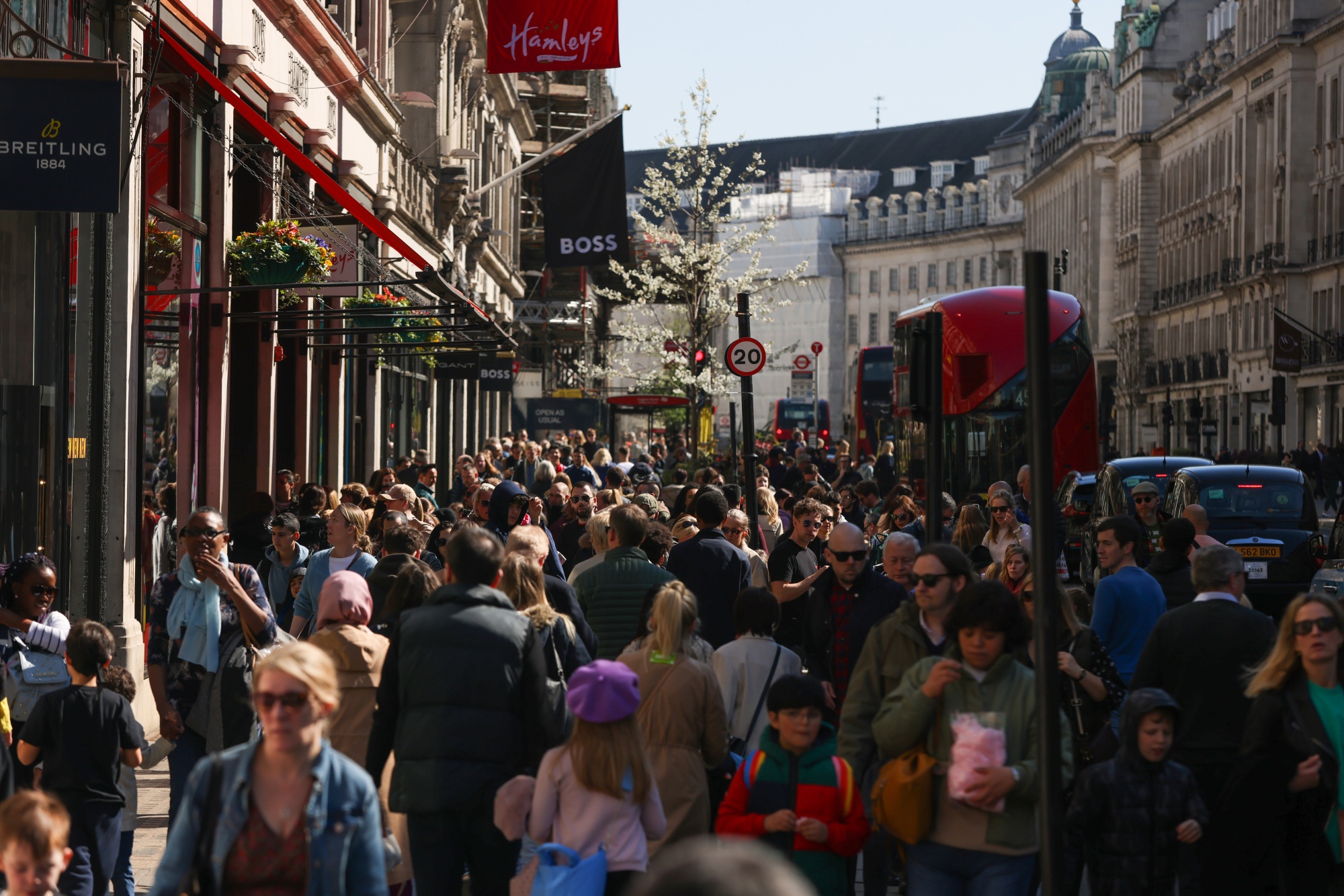 伦敦的摄政街购物者,2023年4月4日 — 本月难得的晴天。