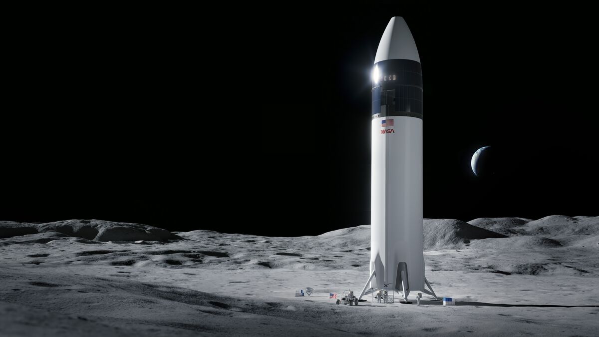 一张SpaceX人类登月系统的CGI图像。来源:SpaceX