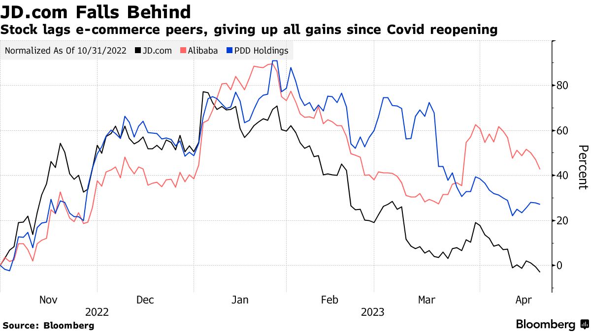 自年初以来下跌37%后,京东在恒生科技指数以及在香港交易的中国股票中落后于所有同行。从新冠疫情低谷中缓慢而不均匀的复苏,再加上来自竞争对手拼多多控股有限公司和字节跳动有限公司的日益激烈竞争,导致高盛集团和瑞银集团等公司纷纷下调了他们的估值。