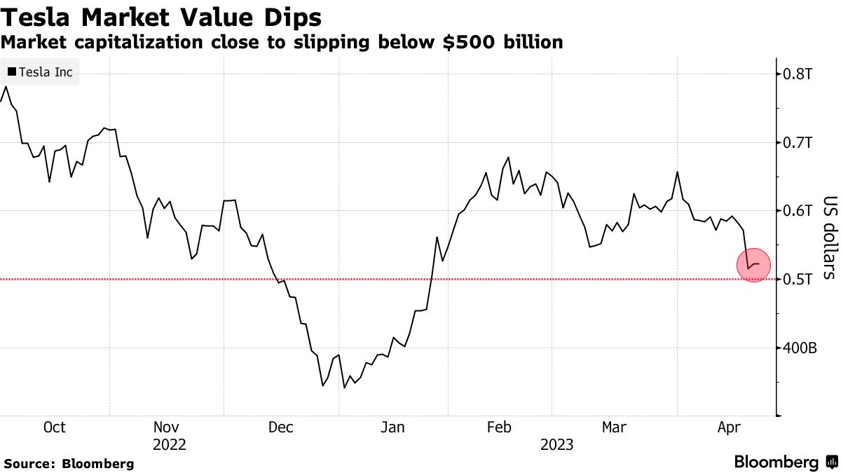 特斯拉股价上周下跌近11%,抹去约630亿美元的市值,使其价值濒临跌破5000亿美元。这家电动汽车制造商的第一季度业绩受到一系列降价的影响,蚕食了利润率。至少两位分析师自那时以来已经下调了该股。该公司的股价周一下跌0.5%。
