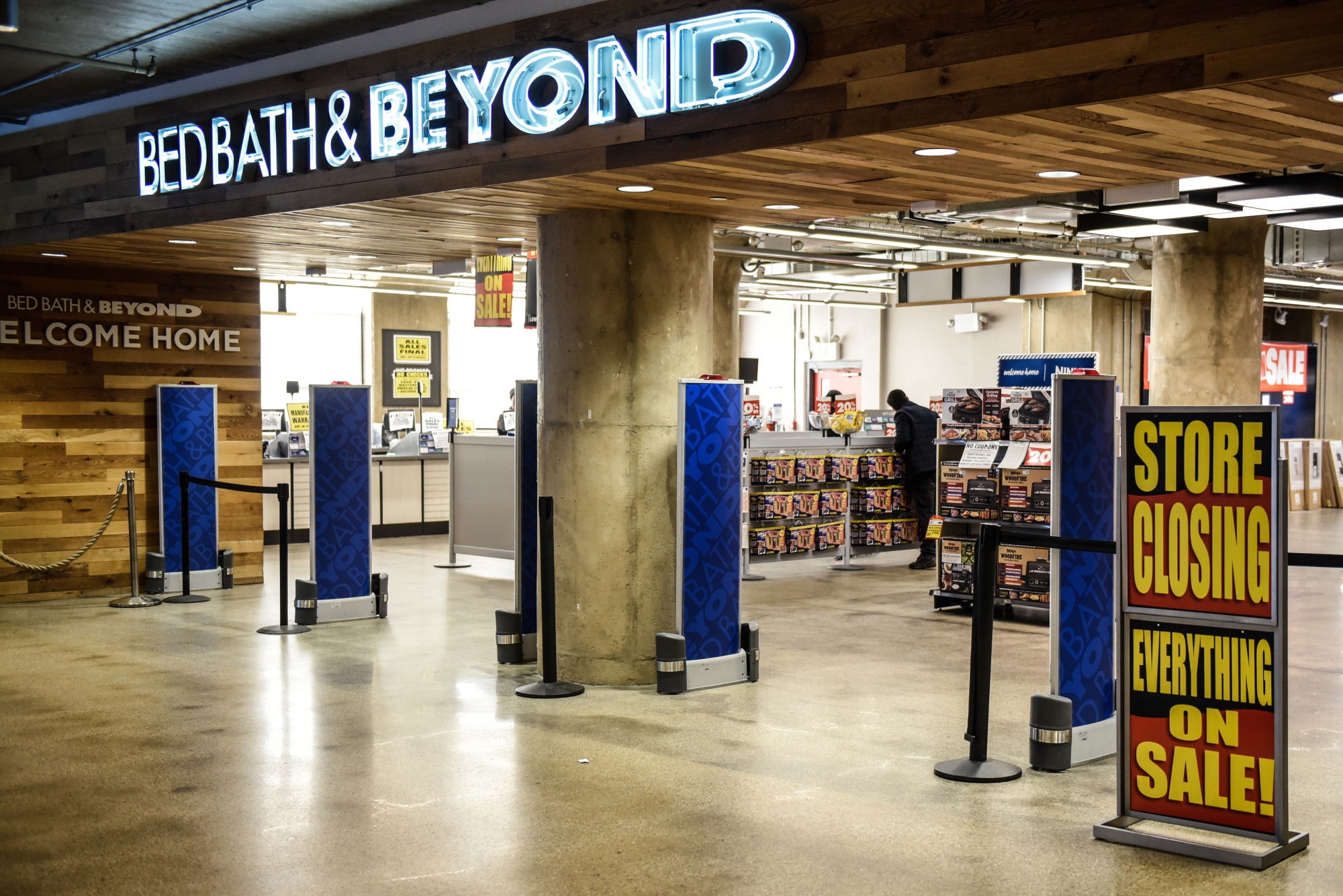 在美国纽约布鲁克林区的一家Bed Bath & Beyond商店门口挂着“关店”标志,日期为2023年2月6日。