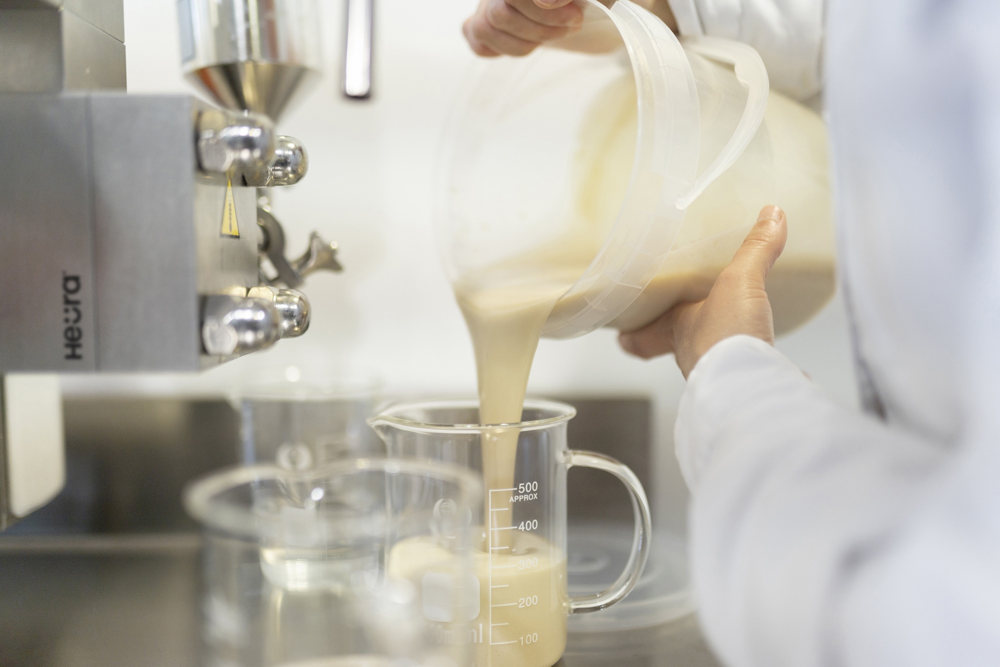 在Heura实验室进行研究。来源:Heura食品“你不再使用所有人都依赖的添加剂,”费尔南德斯说。“这是绝对的革命,因为这是一种基本上以完全不同方式设计植物基食品的技术。”