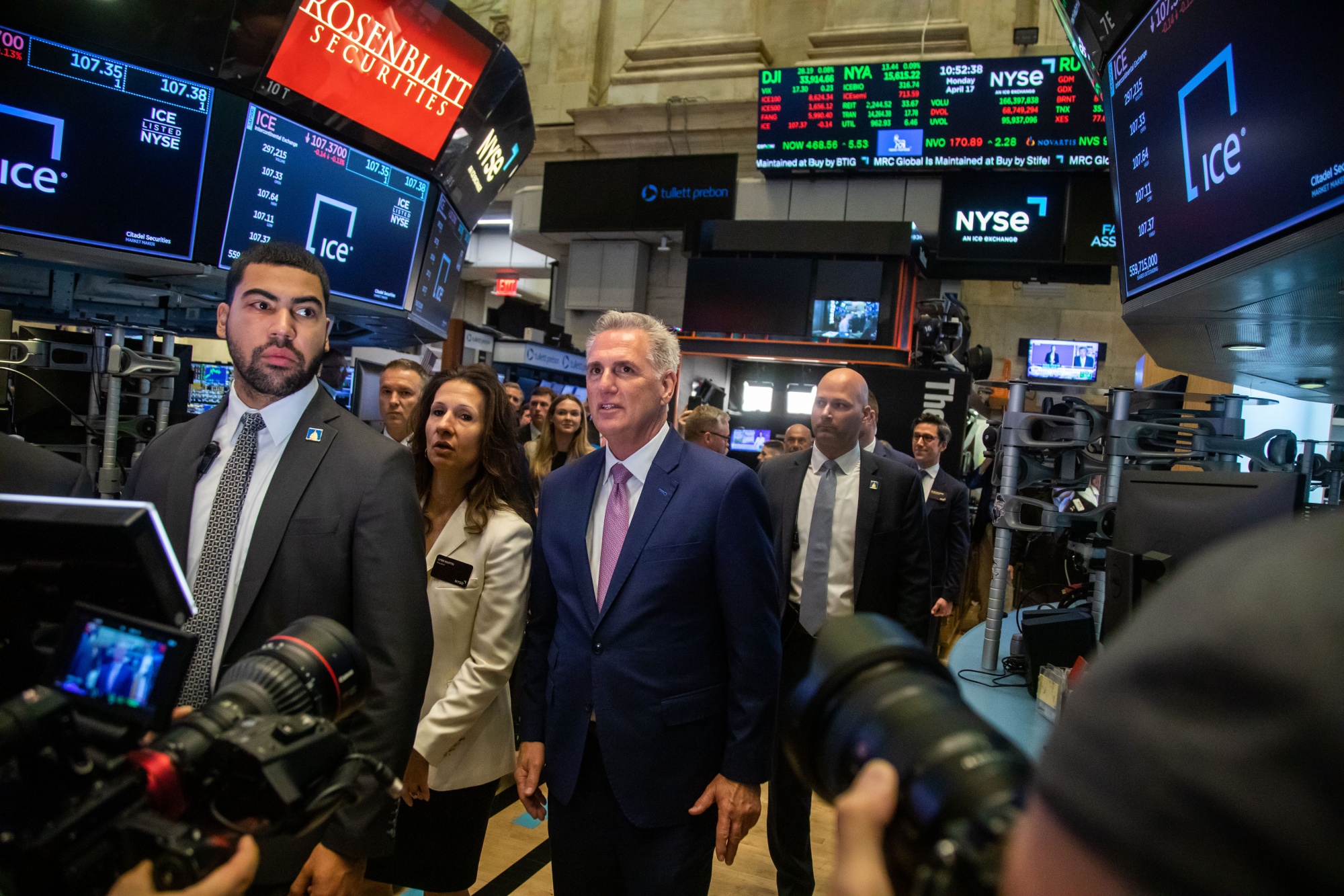 美国众议院议长凯文·麦卡锡,加利福尼亚州共和党人,上周在纽约证券交易所交易大厅。