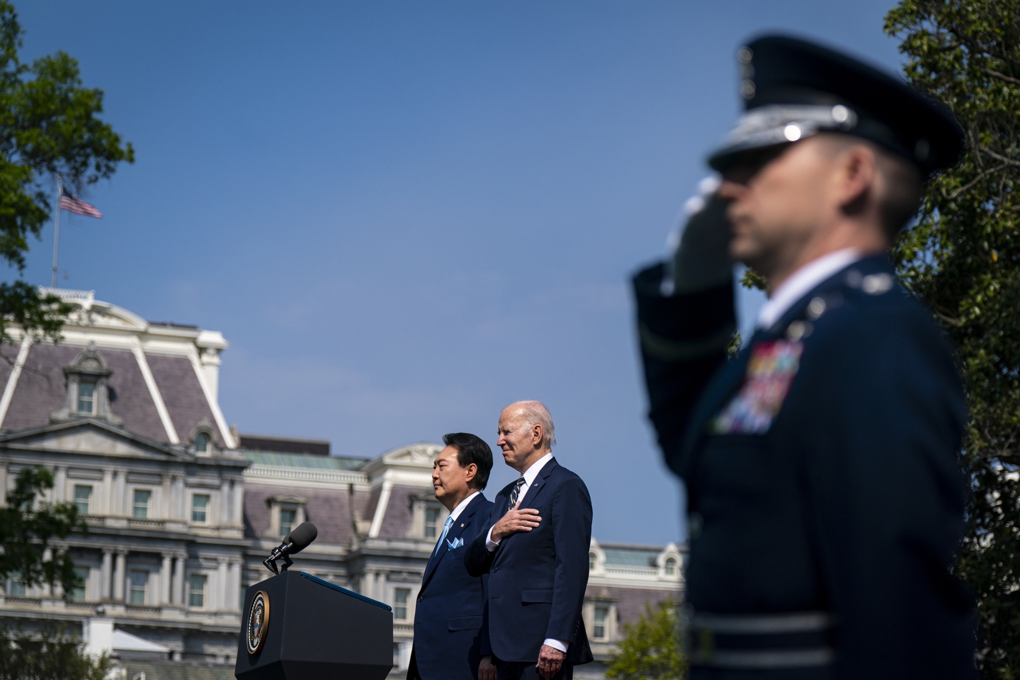 美国总统乔·拜登和韩国总统尹锡悦在白宫。