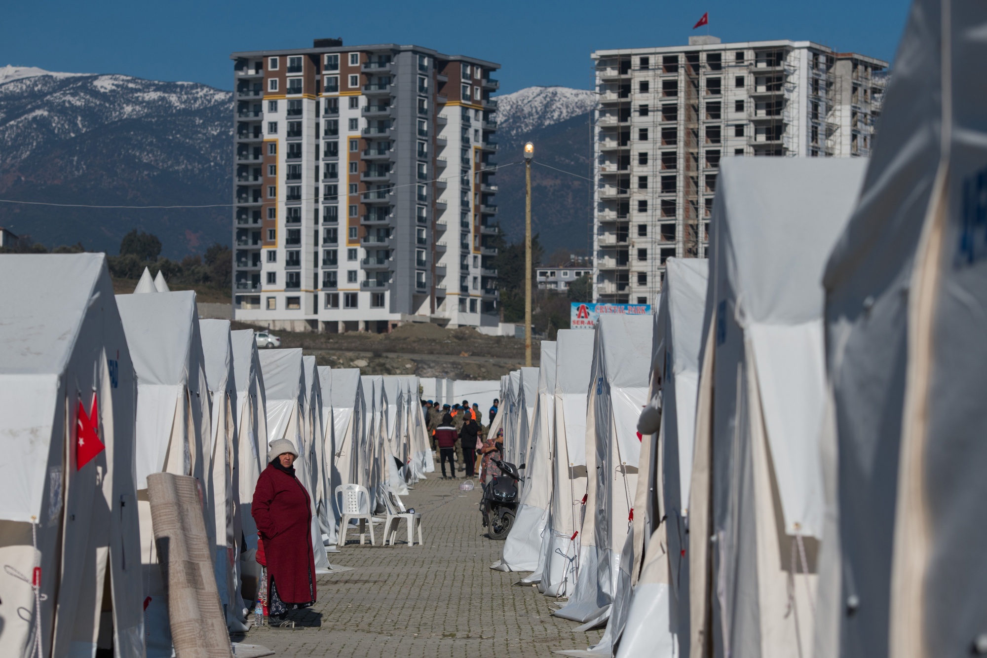 土耳其灾害和紧急情况管理局于2月14日在哈塔伊设立的人道主义营地。摄影师:Nathan Laine/Bloomberg“政府未能将援助送到地震区的每一个角落。但我更批评试图获取权力的那个人,”奥尔杜在阿拉班镇的店铺里说道。“已经够了。一个人在没有任何监督的情况下做出所有决定是不对的。”