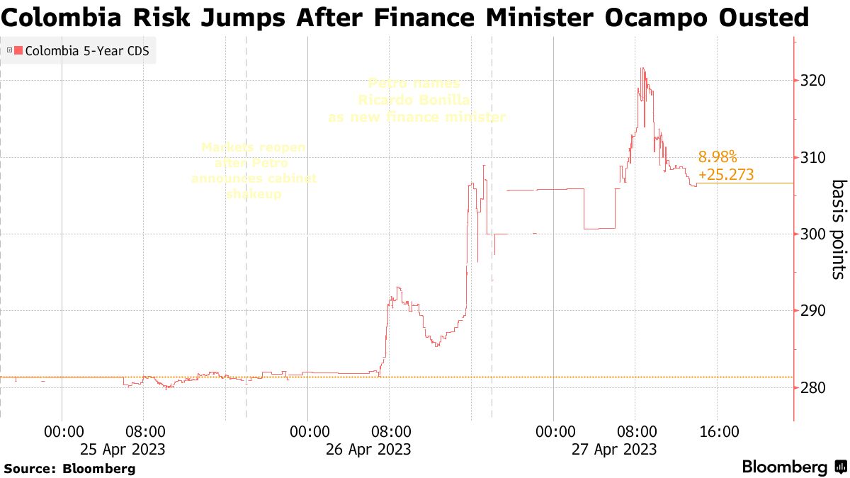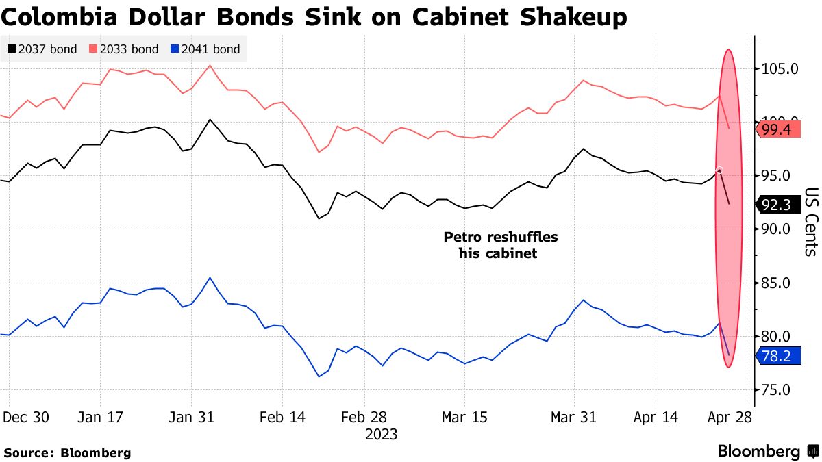 总统古斯塔沃·佩特罗的突然调整使市场在周四大幅下挫。货币贬值高达3.4%,本地比索债券收益率上升,美元债券延续第二天下跌。购买该国债务违约保险的成本上升,掉期交易也在上涨。