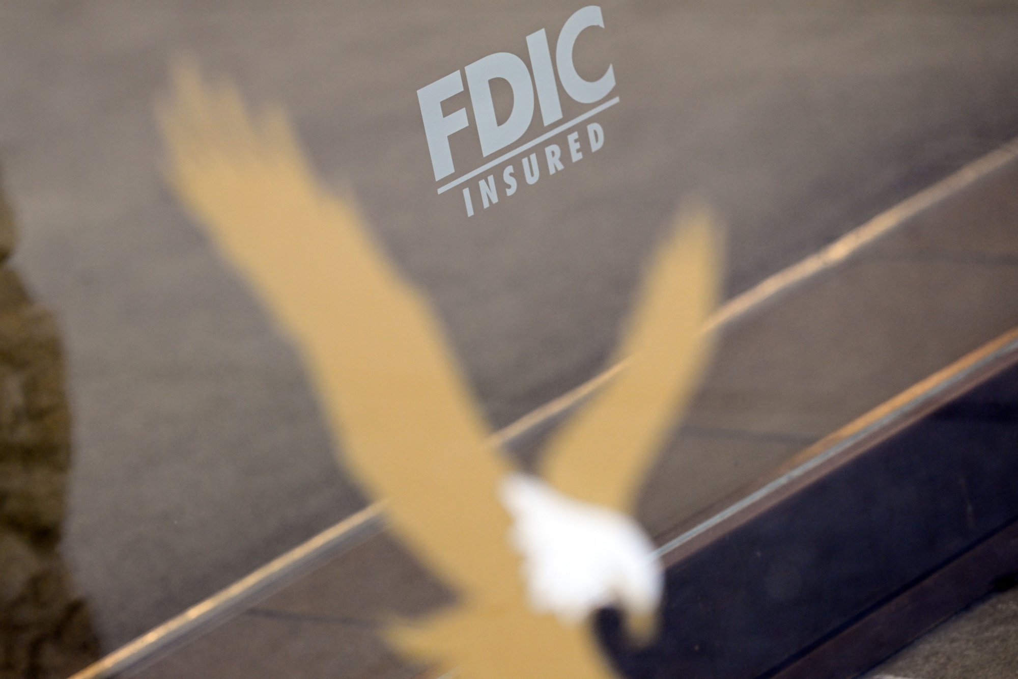 美国联邦存款保险公司(FDIC)标志展示在加利福尼亚州圣莫尼卡的第一共和国银行分行外。