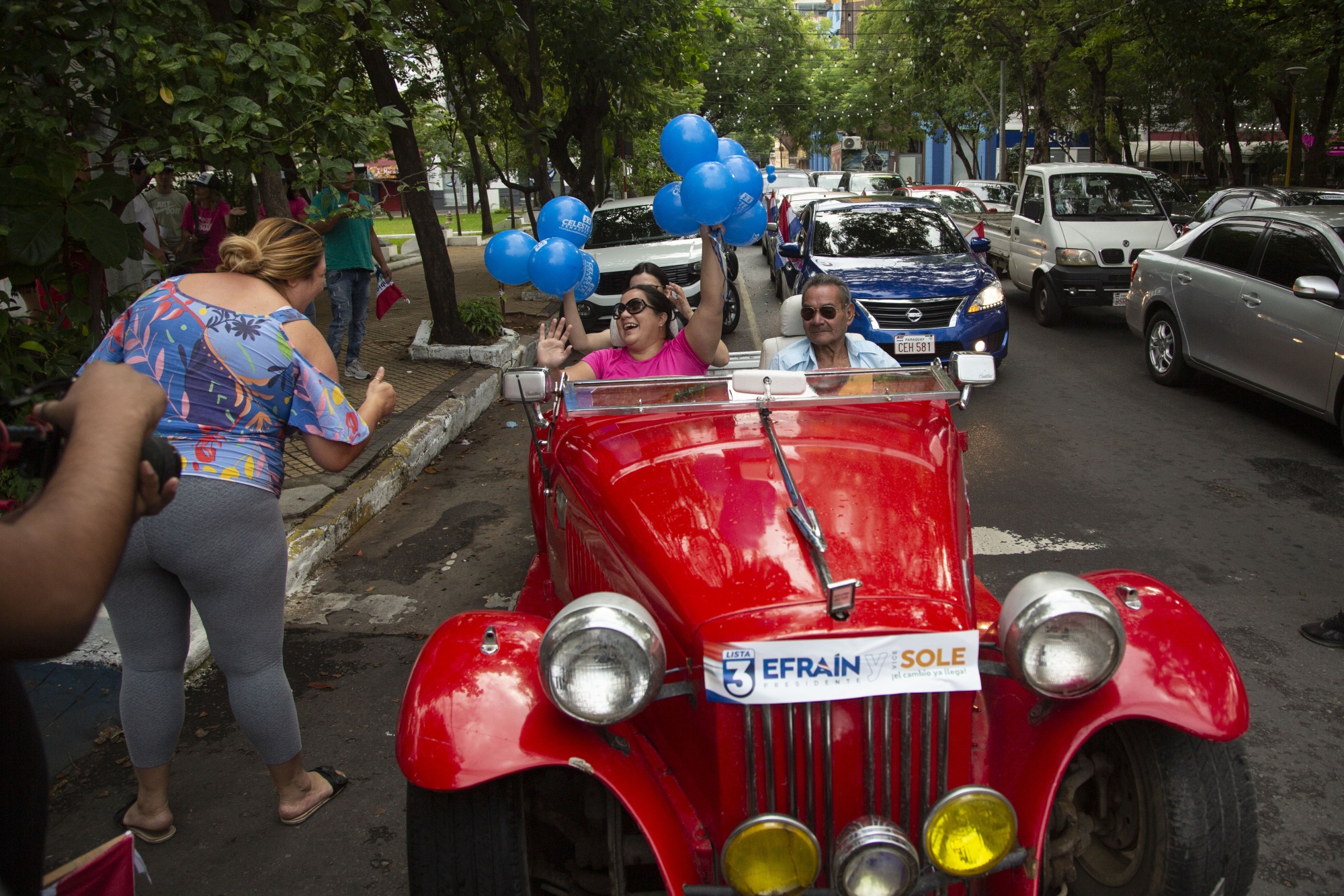 巴拉圭总统候选人埃弗雷因·阿莱格雷在4月16日的亚松森竞选集会上。