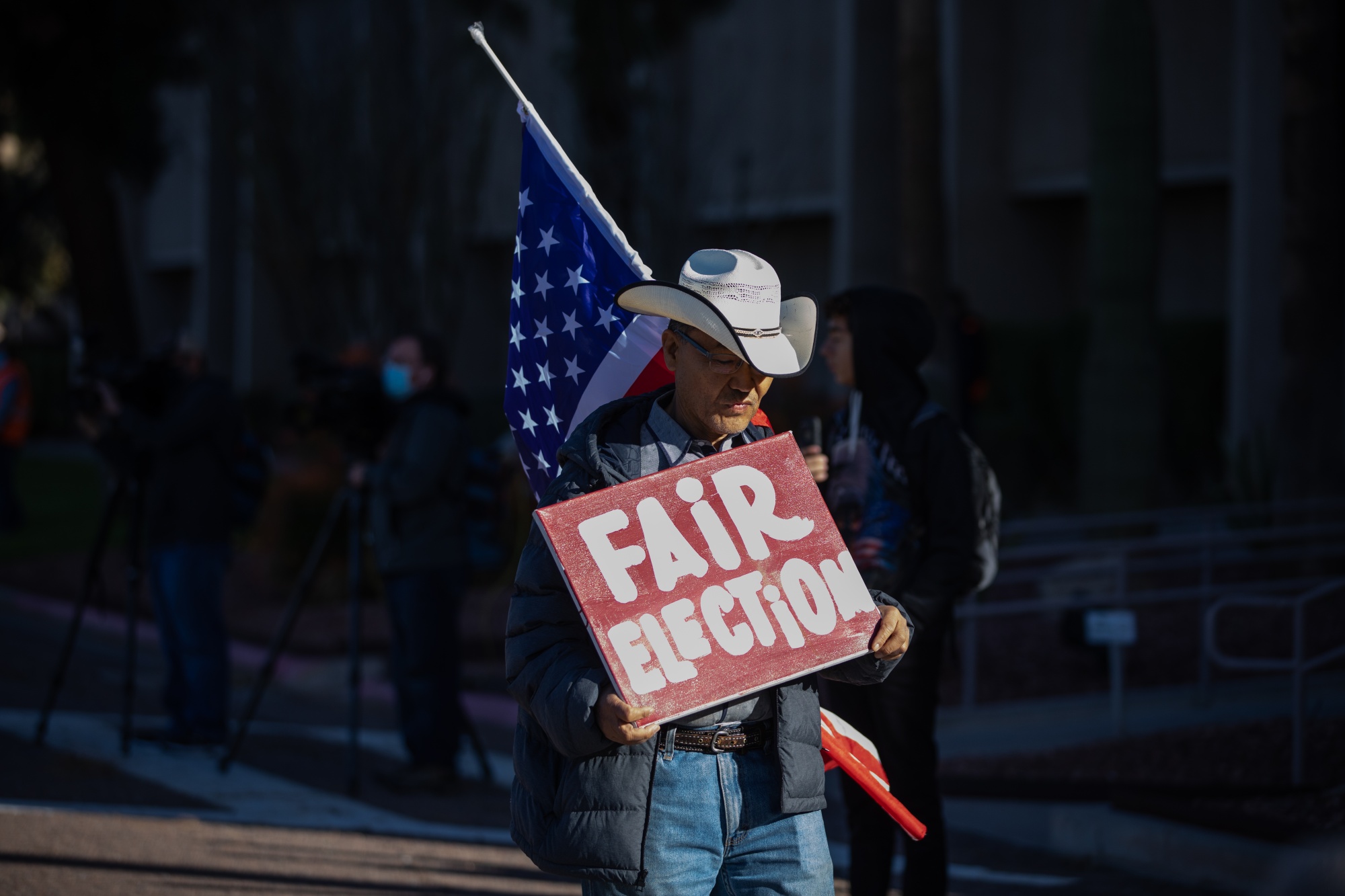 2020年12月,在亚利桑那州议会大厦外的示威者。
