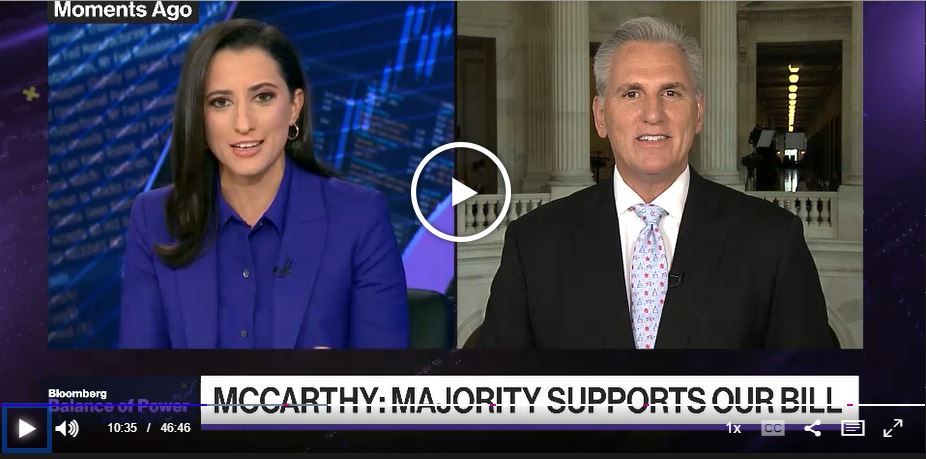 今天在彭博电视台的权力平衡节目中,主持人安玛丽·霍登和乔·马修采访了前美国联邦存款保险公司主席比尔·艾萨克,谈论银行危机。如果你错过了,众议院议长凯文·麦卡锡在昨天的节目中告诉霍登,拜登将不得不同意通过削减支出来增加债务上限。