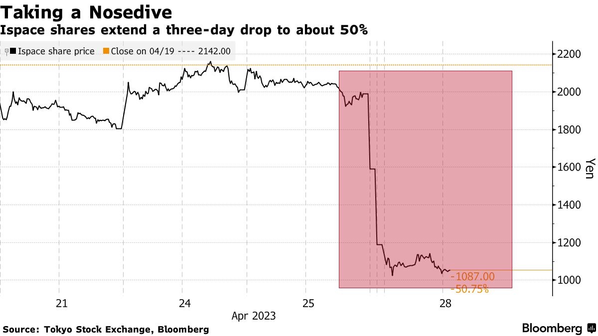 总部位于东京的Ispace公司的股价在其登月器失败后第三天下跌,抹去了大约60亿美元,几乎是公司价值的一半。