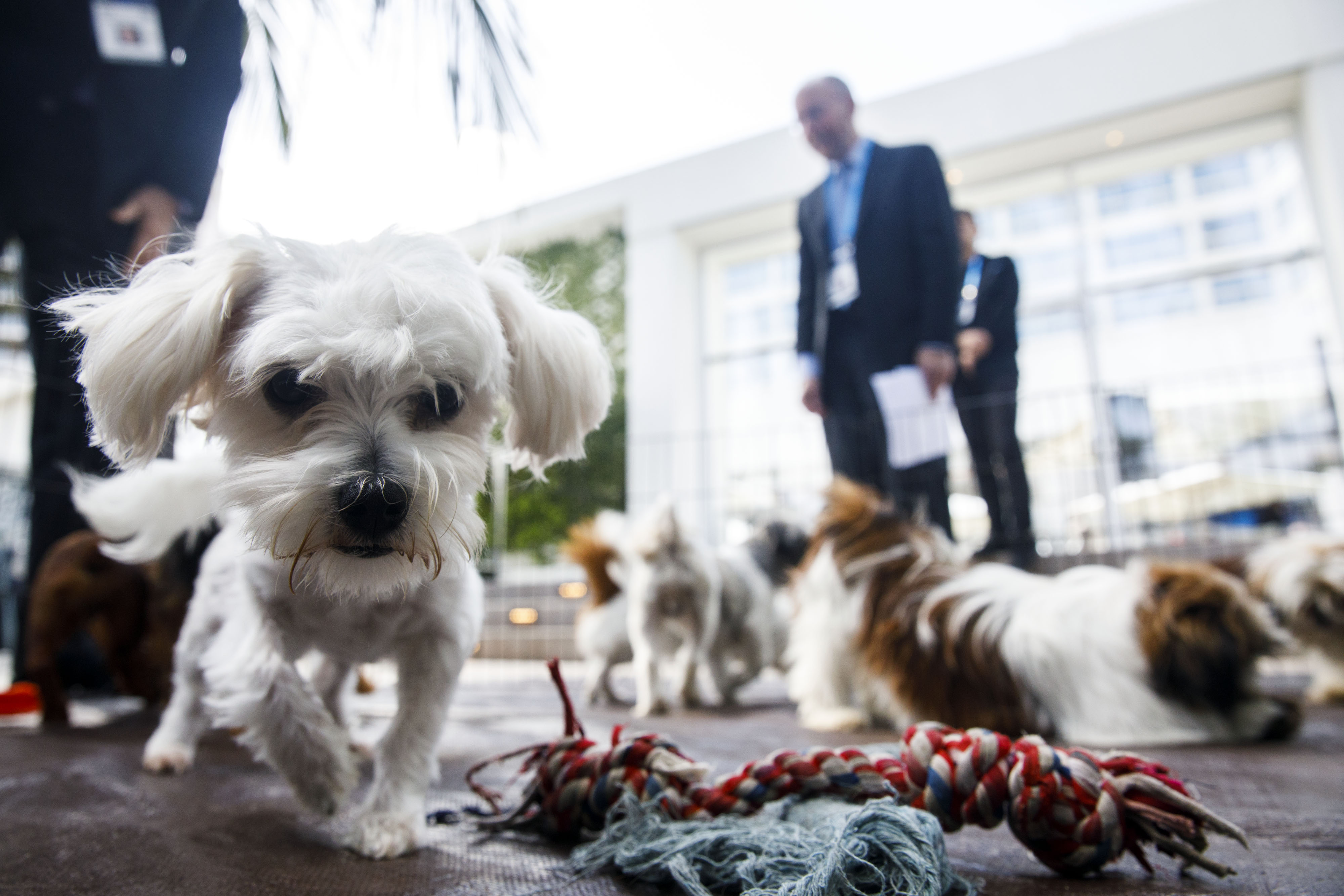 2019年密尔肯研究所全球会议上的小狗。摄影师:Patrick T. Fallon/彭博社**最后,**每年一度的密尔肯研究所全球会议将于周一开幕,全球3500名金融精英将聚集在富丽堂皇的比佛利山庄,却面临着持续的银行动荡、不断上升的房地产违约和增长放缓。不过不用担心 — 该活动还将在“健康花园”提供瑜伽和普拉提课程,小狗玩耍时间以及戴安娜·罗斯的特别表演,以帮助那些被困扰于动荡时期的参与者减压。