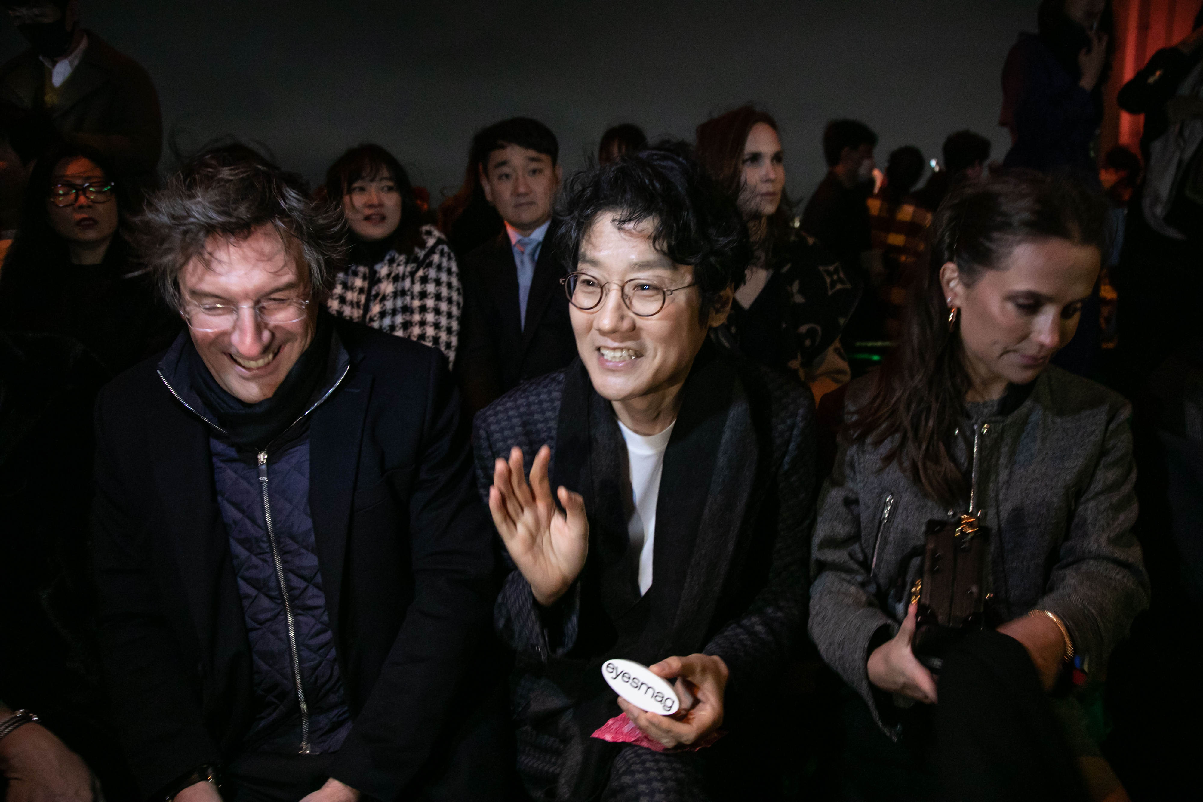 路易威登首席执行官皮耶特罗·贝卡里(Pietro Beccari)(左)和《鱿鱼游戏》创作者黄东赫(Hwang Dong-hyuk)在首尔的路易威登秀上。摄影师:Jean Chung/彭博大型珠宝:《鱿鱼游戏》的郑好燕(Hoyeon Jung)昨晚是路易威登展示首尔江水桥上的晚秋女装系列的第一位模特。路易威登去年在韩国的销售额超过10亿美元,并试图利用韩流和韩剧的受欢迎程度,这在全球拥有大批粉丝。