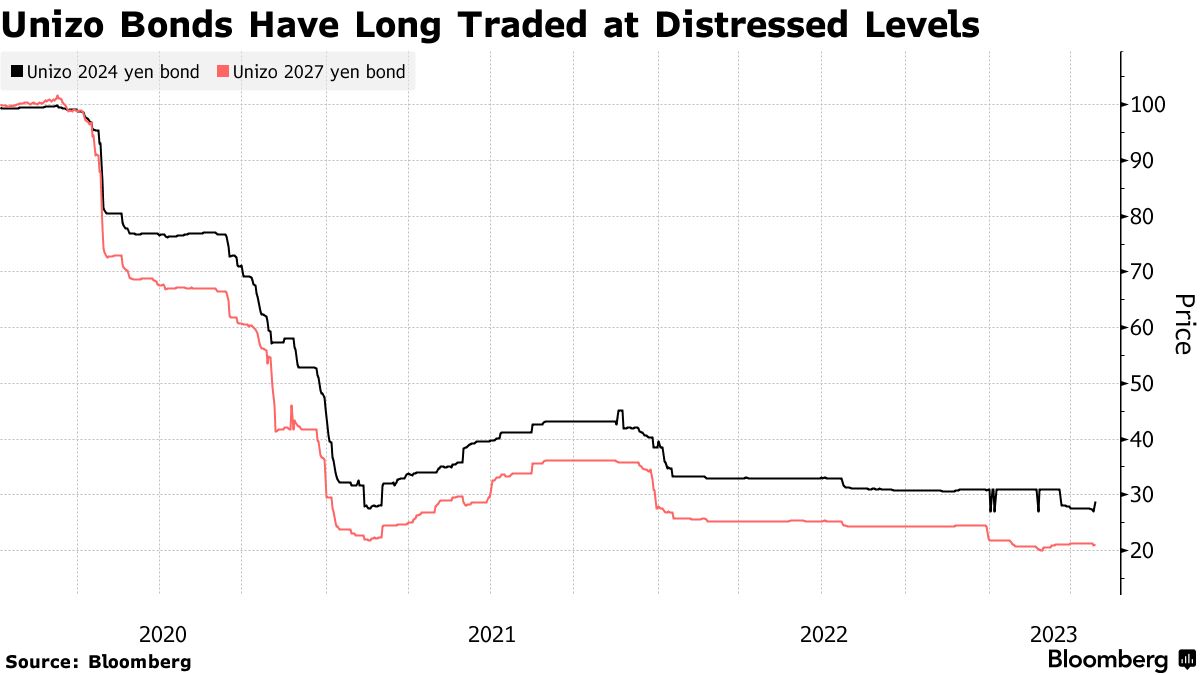 由于法庭申报,Unizo发行的七张以日元计价的票据现在到期赎回。这家房地产公司表示正在努力确定债券持有人。