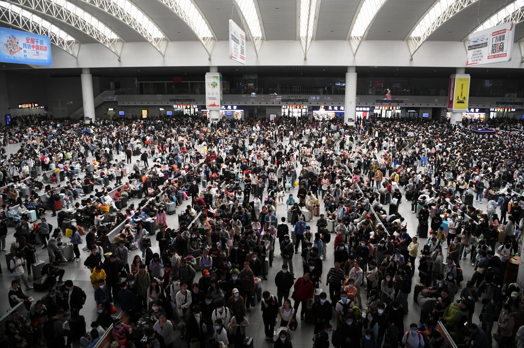 4月29日,南昌火车站的乘客。来源:VCG/Getty Images五一假期期间,数百万中国游客涌入全国各大城市和旅游热点,这是在经历了三年疫情限制和疫情波动后的第一个正常假期。