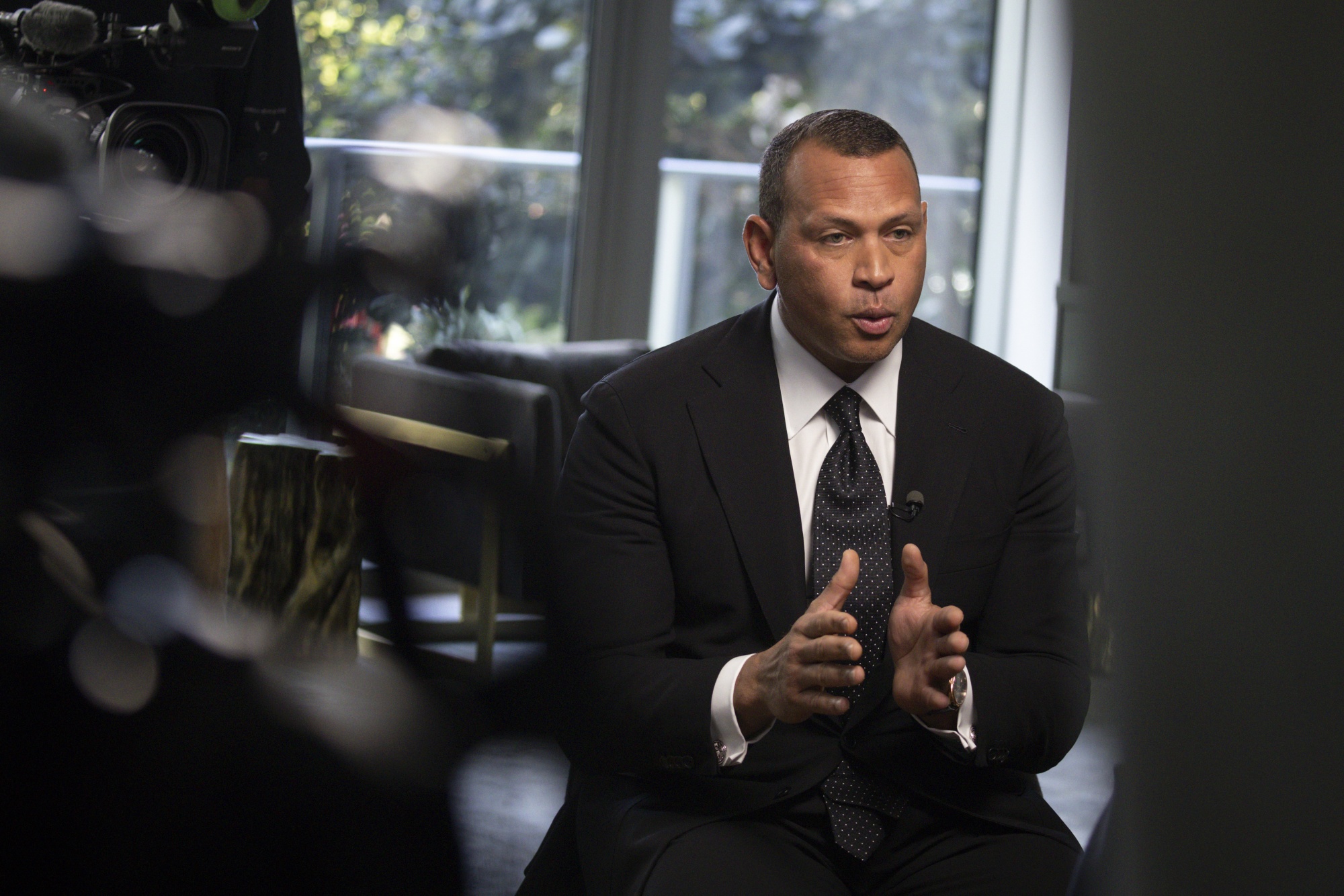 亚历克斯·罗德里格斯在接受大卫·鲁宾斯坦采访时。摄影师:Eva Marie Uzcategui/Bloomberg### 被禁赛2014赛季因服用增强剂被禁赛,然后看到这让你无缘名人堂,这有多困难?