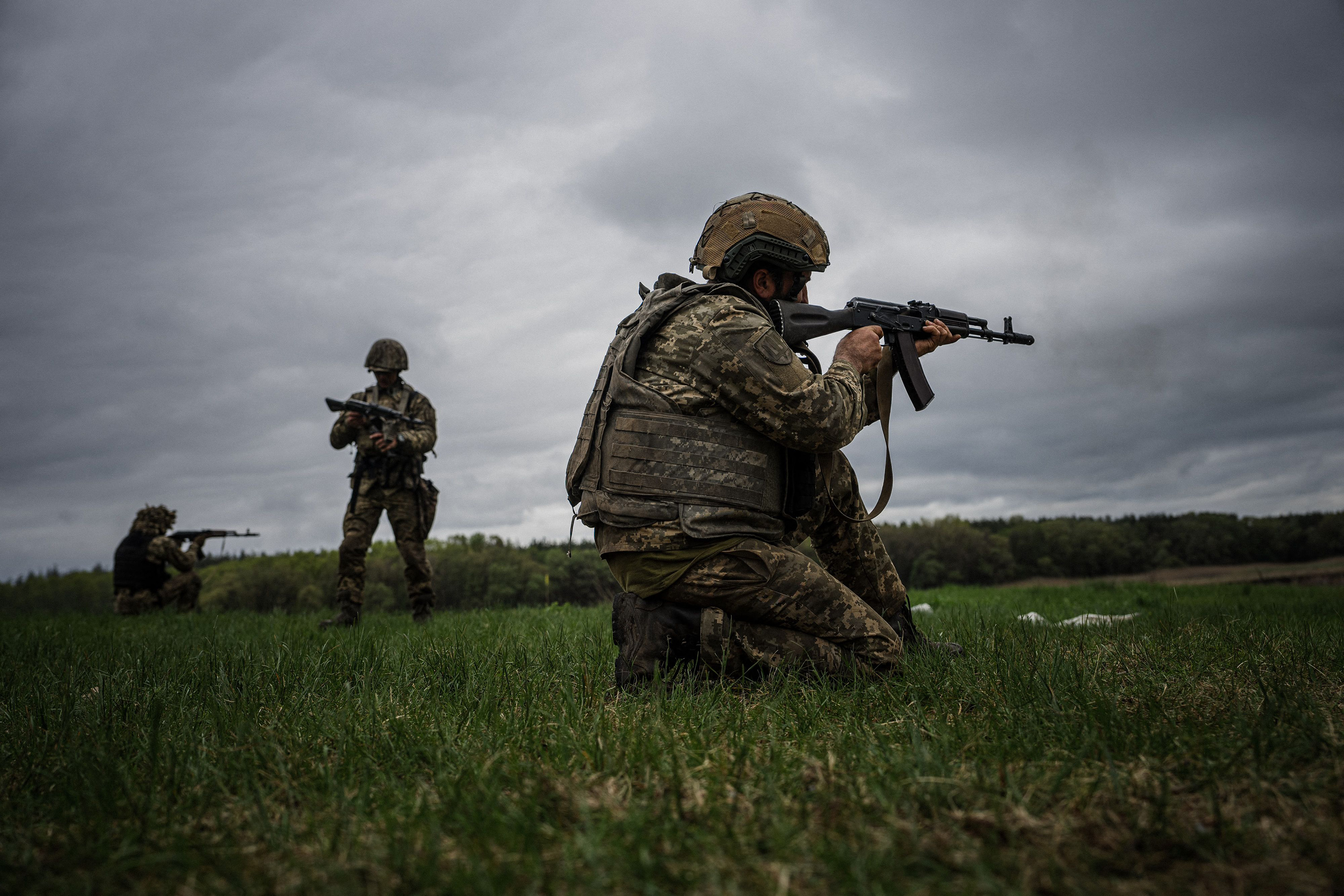 乌克兰军人在哈尔科夫地区进行军事演习,时间是5月1日。