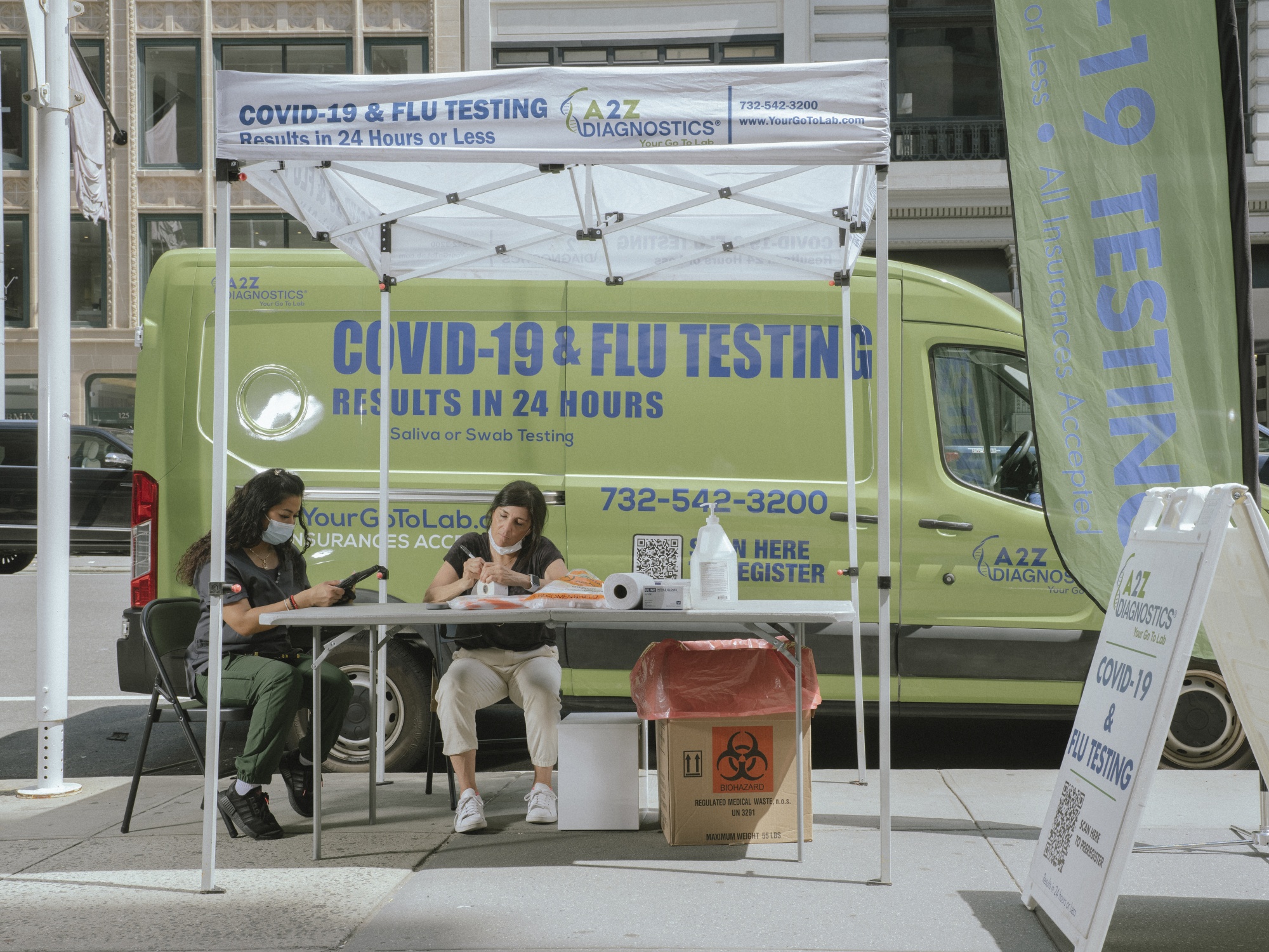 纽约的一个移动新冠肺炎和流感检测点。摄影师:伊斯梅尔·费尔杜斯/彭博社为了振兴销售下降,公司一直在计划制造mRNA流感疫苗,并将其与mRNA新冠疫苗增强剂结合成一种每年一次的注射剂。在美国,流感疫苗的接种率约为50%,而最新的新冠疫苗接种率为17%。通过将它们配对,更多的人可能会接种这两种疫苗,公司也可以收取更高的费用。