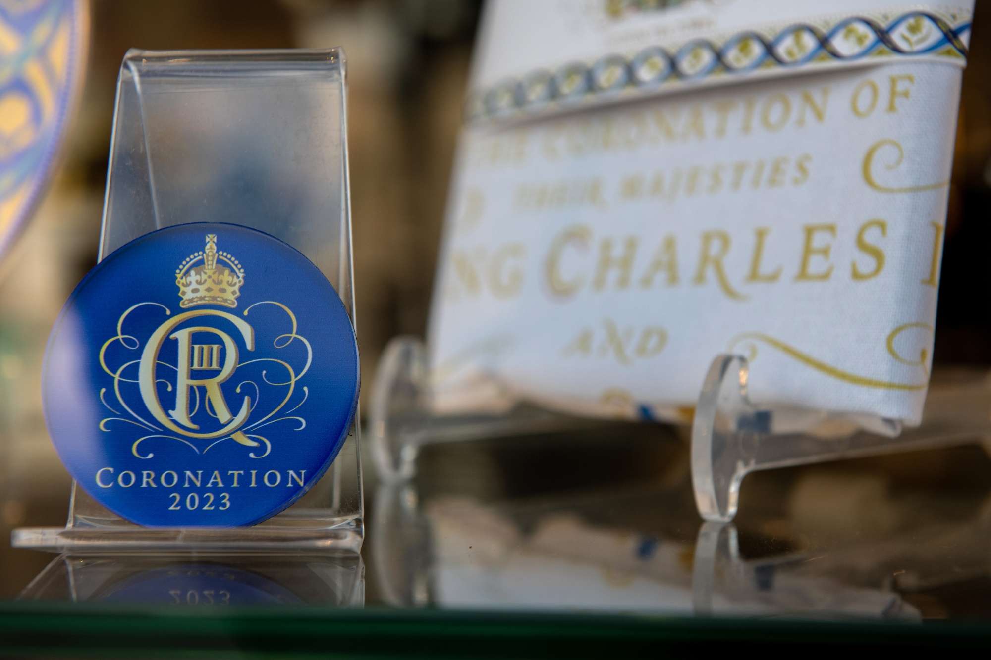 白金汉宫商店出售的纪念品,庆祝查尔斯三世加冕