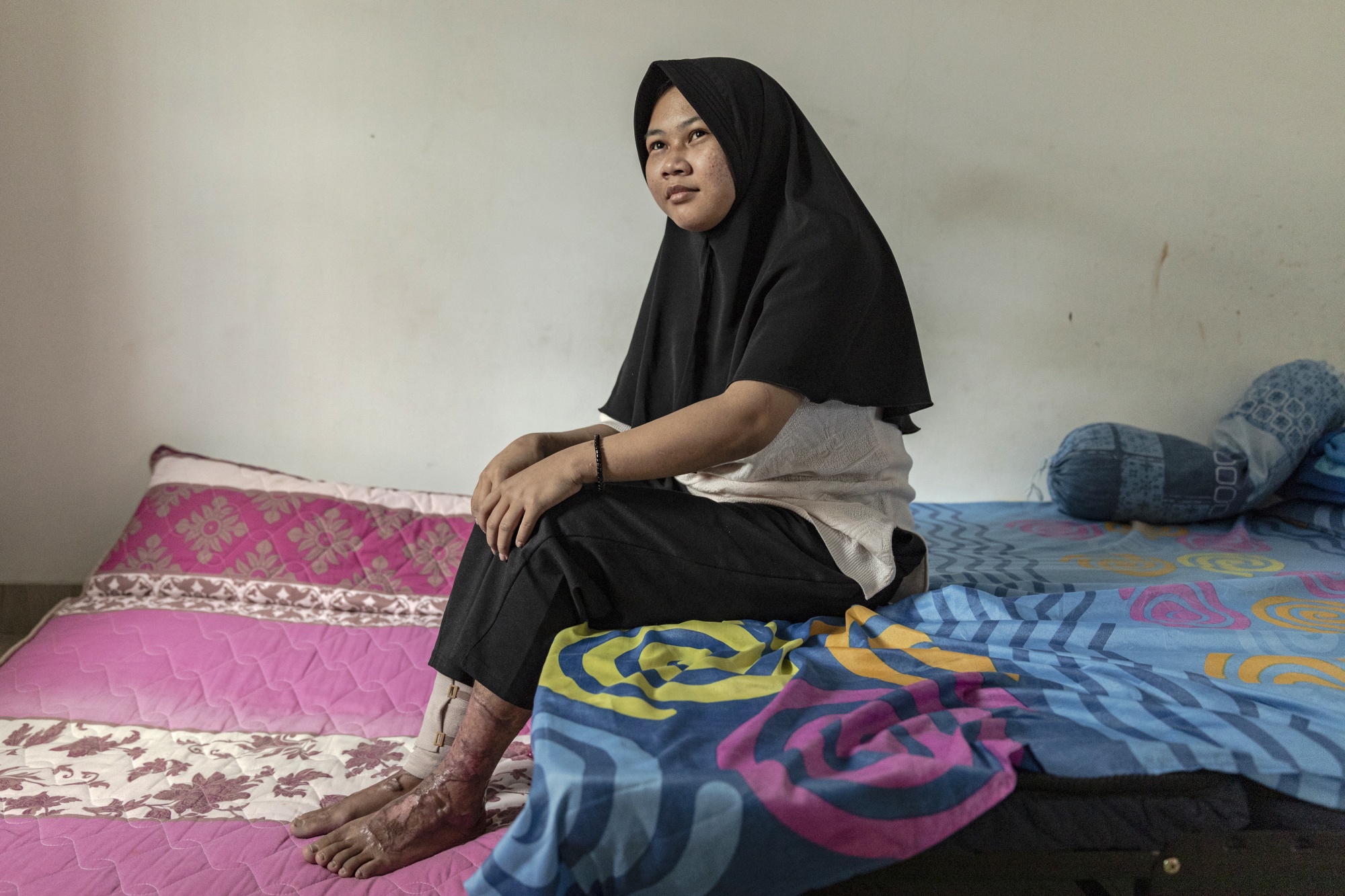 西蒂·霍蒂玛摄影师:尼玛斯·劳拉/彭博社西蒂·霍蒂玛,24岁,是一个糟糕情况的典范。她在雅加达南部一个富裕社区为一家人工作仅四个月,雇主就用锁链束缚她、殴打她,并以热水泼洒她作为对一次轻微偷窃的惩罚。