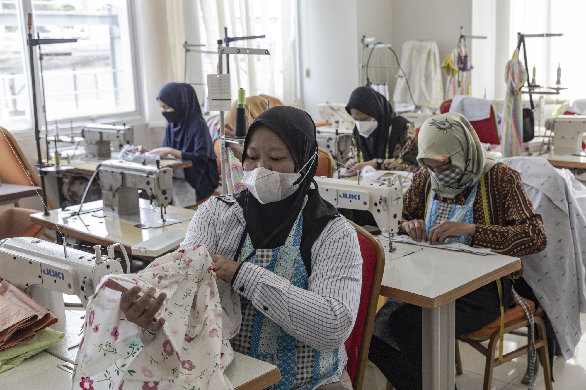 雅加达西部职业培训中心的缝纫课。摄影师:Nyimas Laula/Bloomberg尽管如此,该法案是改善印度尼西亚家政工人保护的第一步。随着该国中产阶级的扩大,家庭工作人员的数量预计也会增加。根据国际劳工组织的数据,2008年至2015年间约有50万人加入了这个行业。