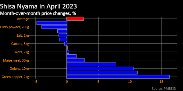 烧烤成本 | 尽管南非的食品价格全面上涨,但新鲜农产品的涨幅明显。过去一个月,青椒的价格上涨了16%,是彭博Shisa Nyama指数中任何单一成分中涨幅最大的,其次是洋葱和菠菜分别上涨11%和西红柿上涨8%。
