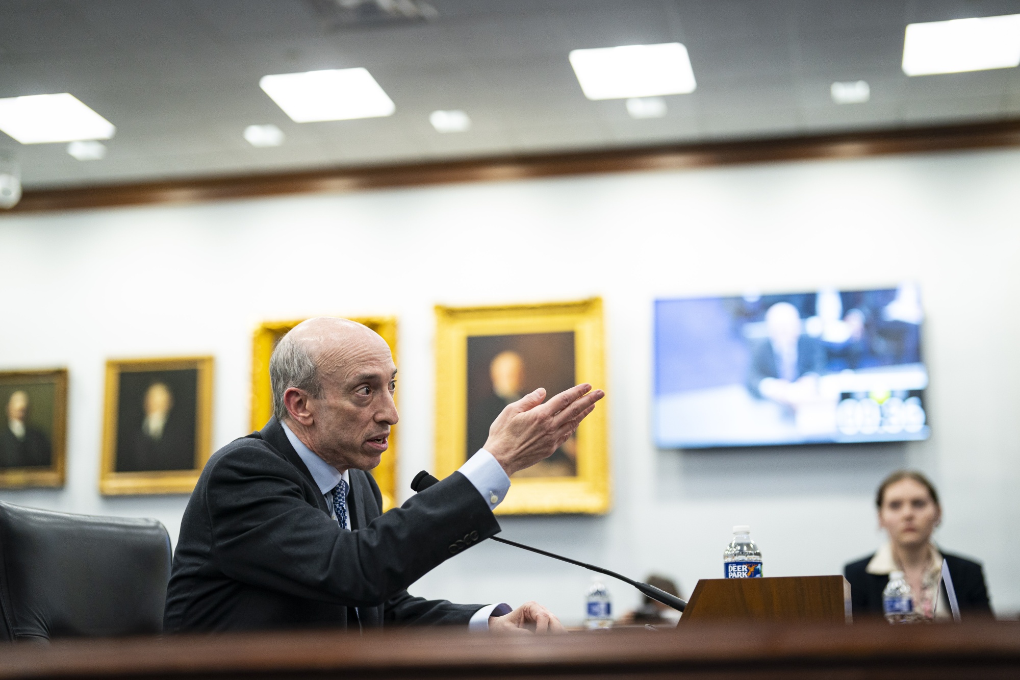 美国证券交易委员会正在调查第一共和银行可能存在基于内幕信息的交易,此前该银行被联邦政府接管并出售给摩根大通。上图为SEC主席加里·根斯勒(Gary Gensler)在3月29日华盛顿众议院拨款小组委员会听证会上作证。