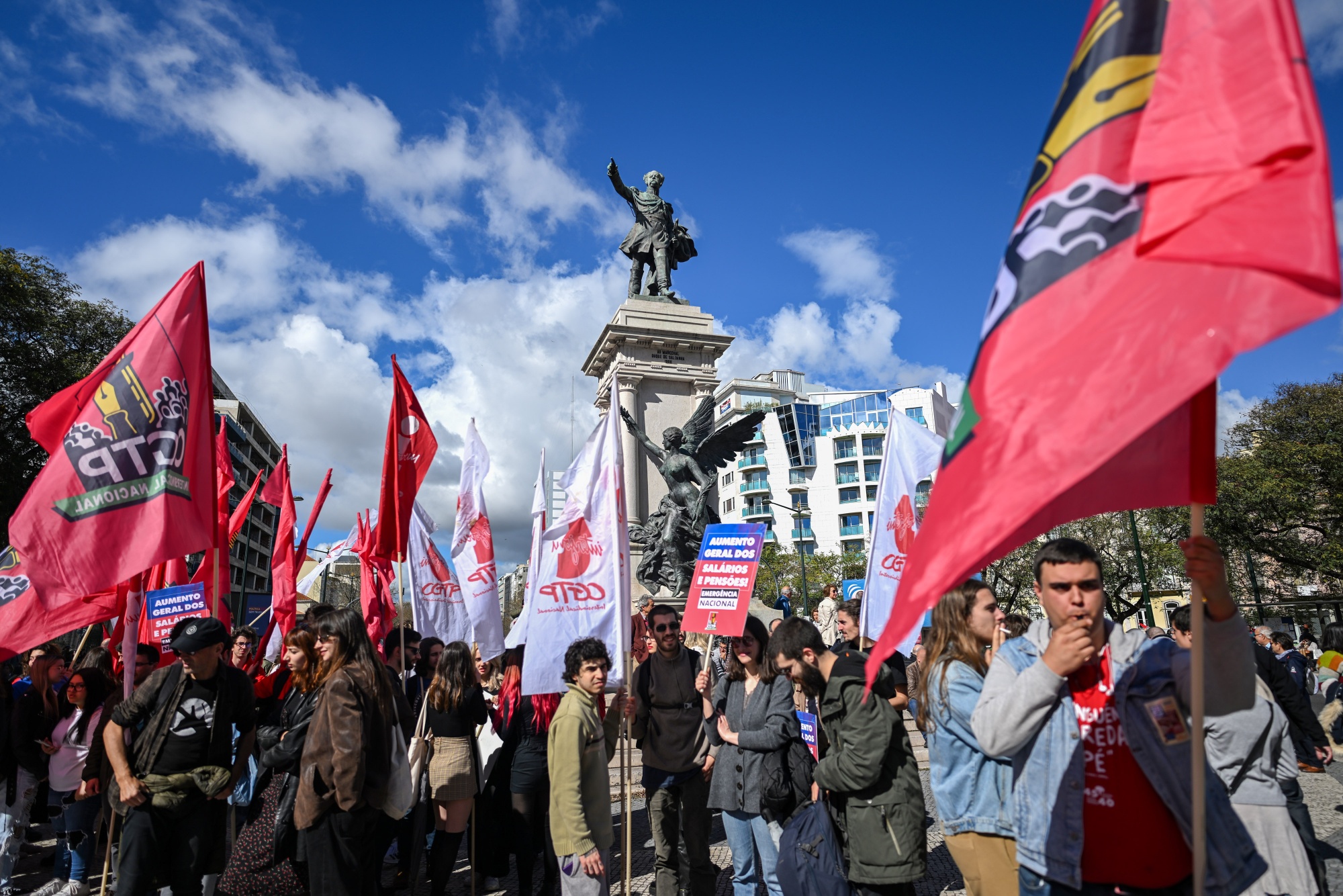 示威者在里斯本举行的一次抗议活动中挥舞旗帜和标语,抗议生活成本上涨。摄影师:Zed Jameson/彭博但许多当地人抱怨他们再也无法负担得起居住在里斯本,那里的房价自2015年以来翻了两番多。一些人走上街头抗议,在四月的一次示威活动中向警察投掷石块和瓶子。
