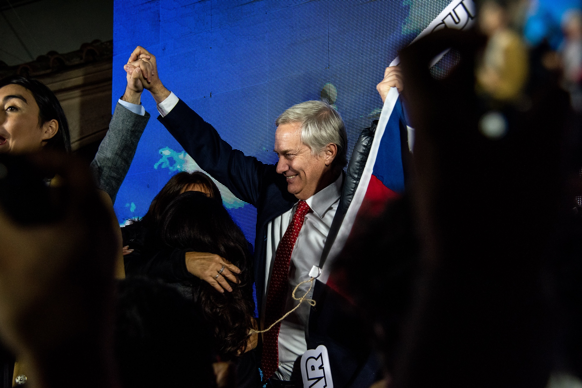 选举后,何塞·安东尼奥·卡斯特在党部总部。摄影师:Cristbal Olivares/Bloomberg这些结果证实了极端保守的共和党的崛起,其名单在宪法委员会中赢得了最多的选票,尽管批评了计划中的重写。在超越传统右翼政党之后,这一结果将引发人们对该党创始人何塞·安东尼奥·卡斯特再次竞选智利总统的期望,他在2021年输给了博里克。