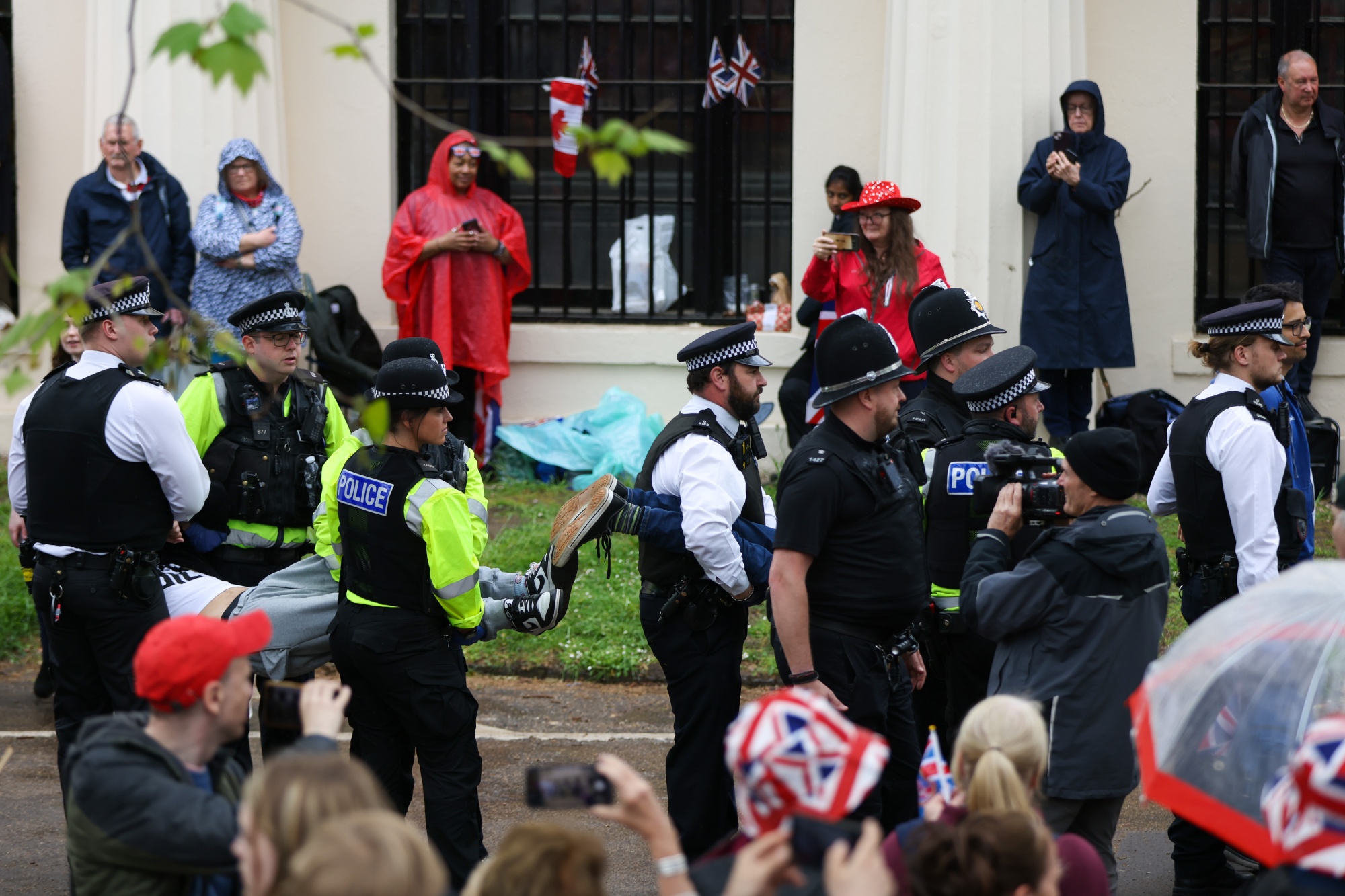 警察在查尔斯三世加冕日当天拘留抗议者,5月6日。