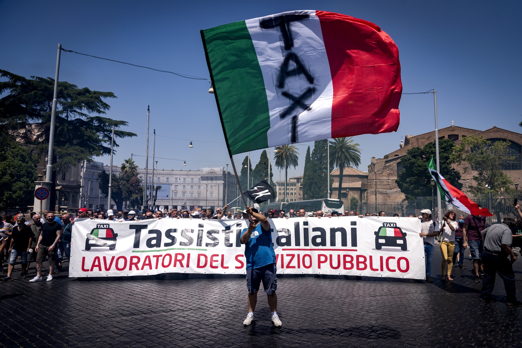 抗议者参加了7月5日在罗马举行的全国出租车司机示威活动。