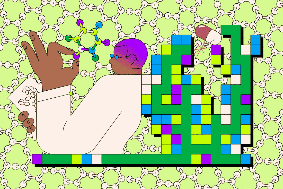 插图:Thomas Hedger for Bloomberg Businessweek在实验室进行广泛分析通常需要数年时间,研究团队会系统地筛选数据和测试结果,以发现有潜力的候选药物。但是,当日本的武田制药公司在二月份以40亿美元从波士顿初创公司购买了一种实验性牛皮癣药物时,它仅用了六个月的时间就通过人工智能选择了一种化合物。
