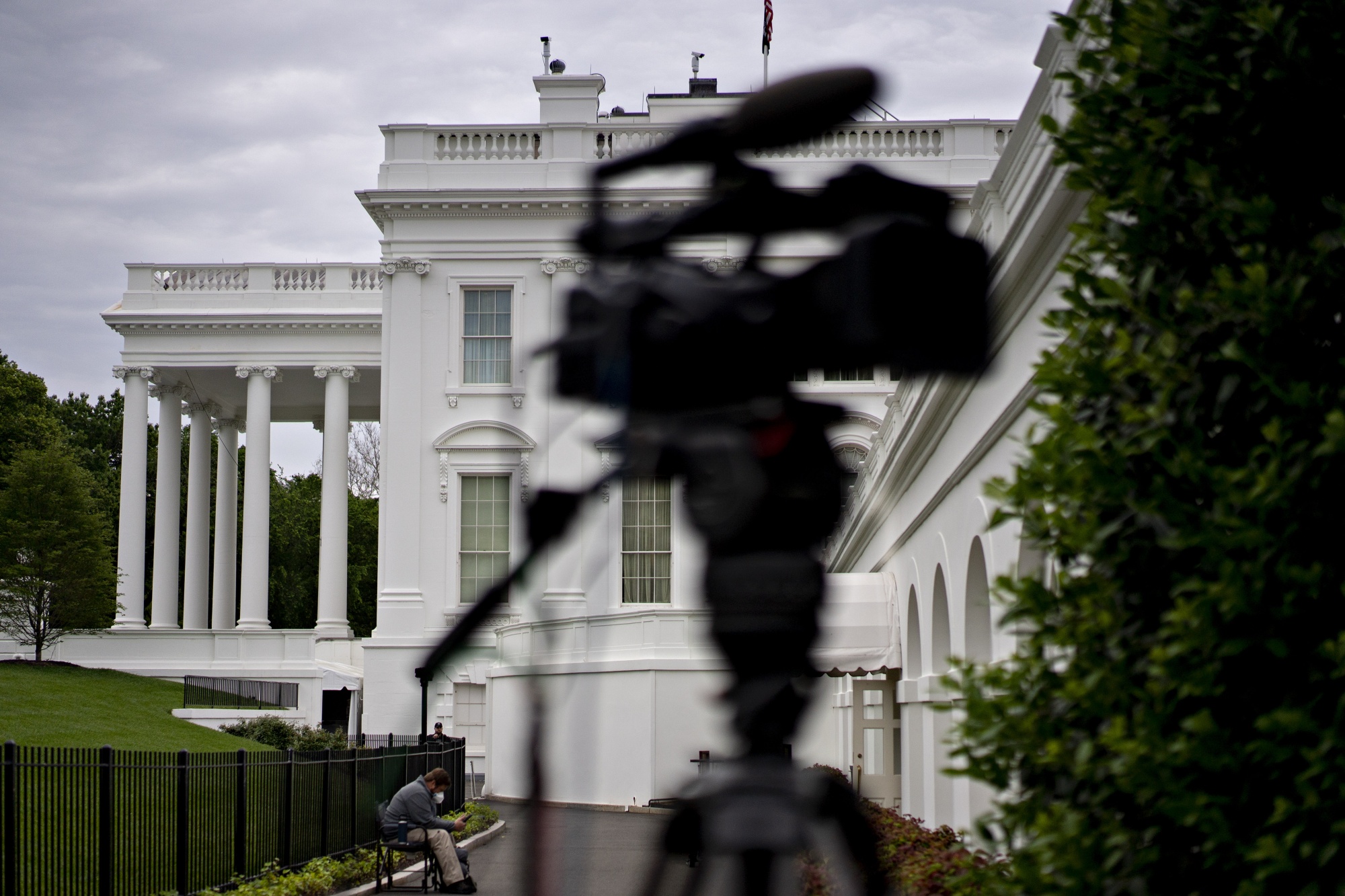 白宫坐落在华盛顿特区的一个电视摄像机旁。