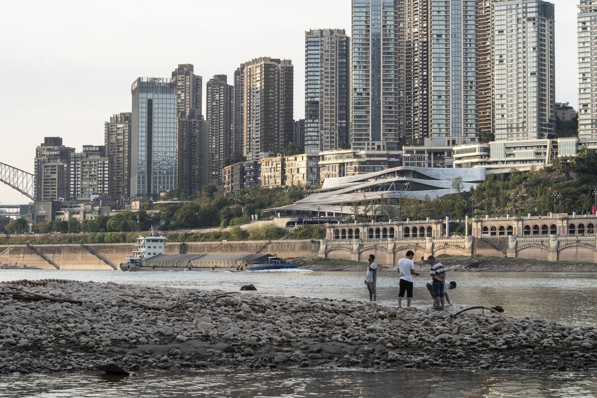 因干旱导致长江浅滩附近的人们在2022年重庆。摄影师:Qilai Shen/Bloomberg