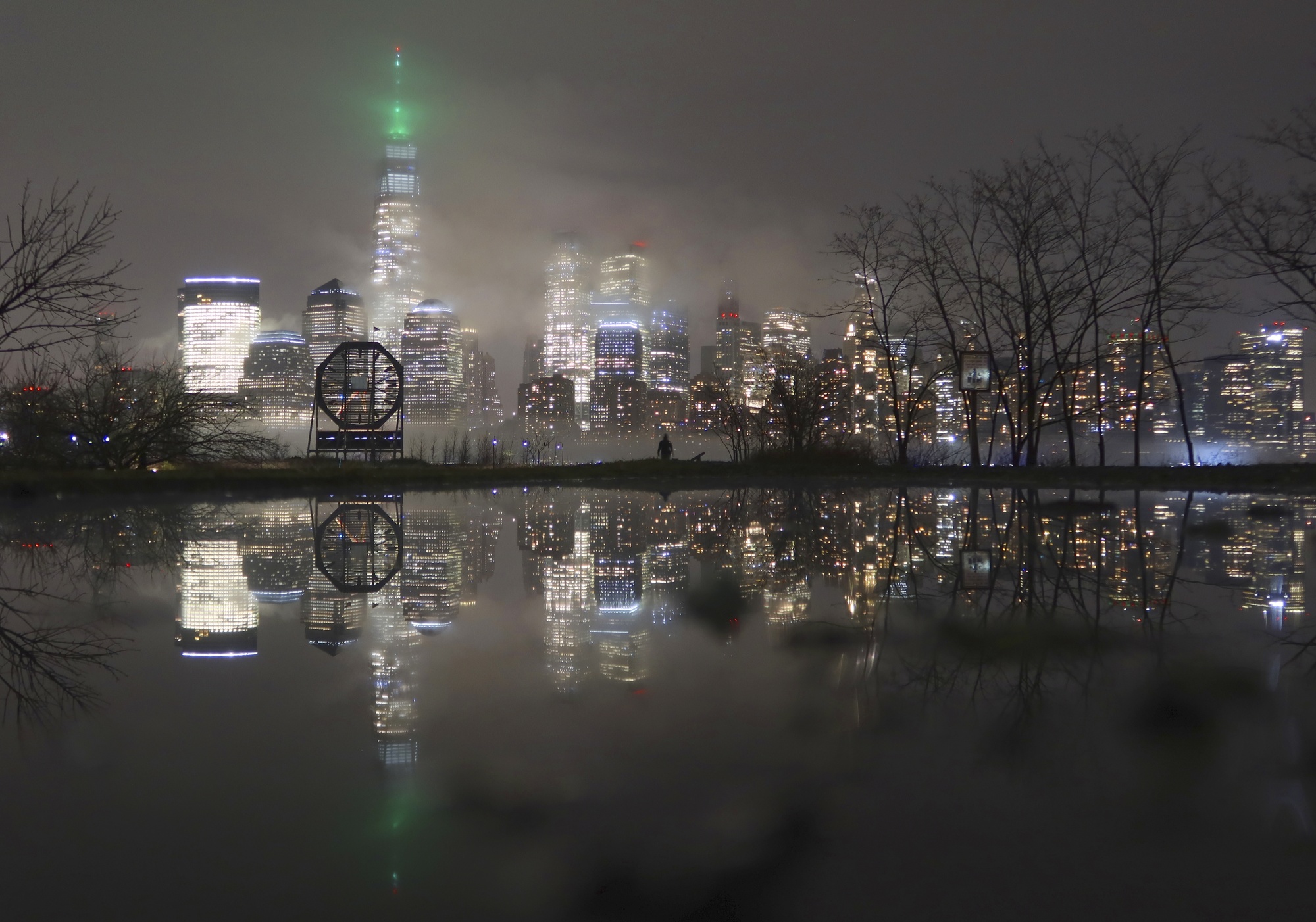 雾笼罩着纽约市曼哈顿下城的世界贸易中心。