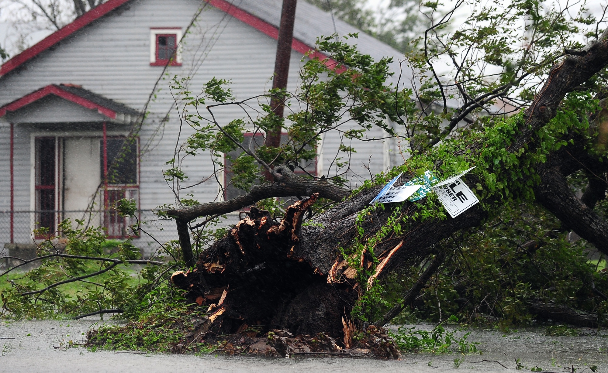 2012年8月,飓风艾萨克袭击新奥尔良时,一棵被连根拔起的树矗立在一座房屋前。摄影师:Frederic J. Brown/AFP via Getty Images问题的复杂化在于该市未能充分投资于积极维护其现有树木库存:根据SOUL报告,2014年起,新奥尔良每棵树的支出比全国平均水平低40%。