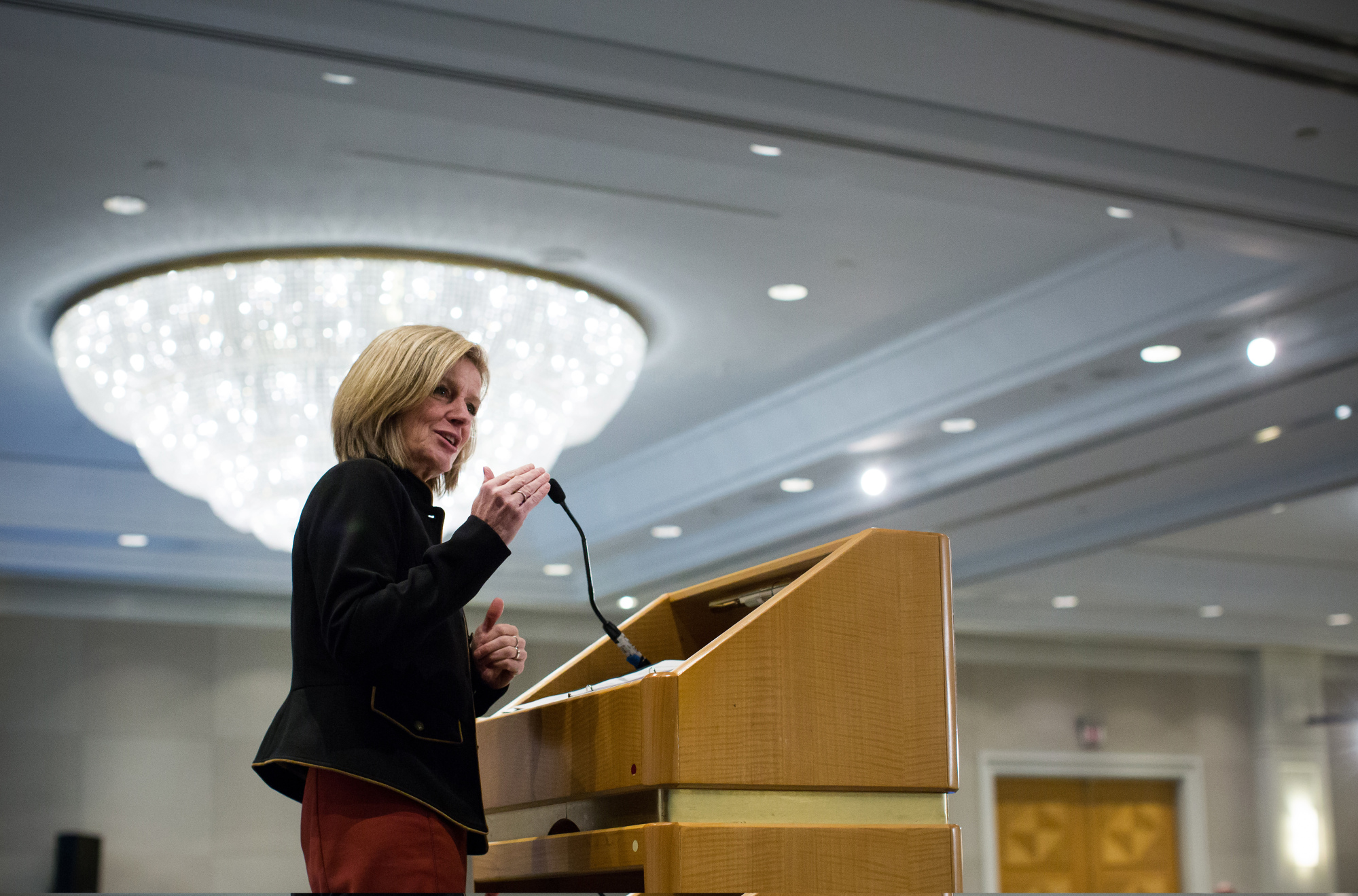 2017年的Rachel Notley。摄影师:Ben Nelms/Bloomberg寻求重返加拿大能源核心地带权力的女性正在反对总理贾斯汀·特鲁多清理石油和天然气行业的目标。