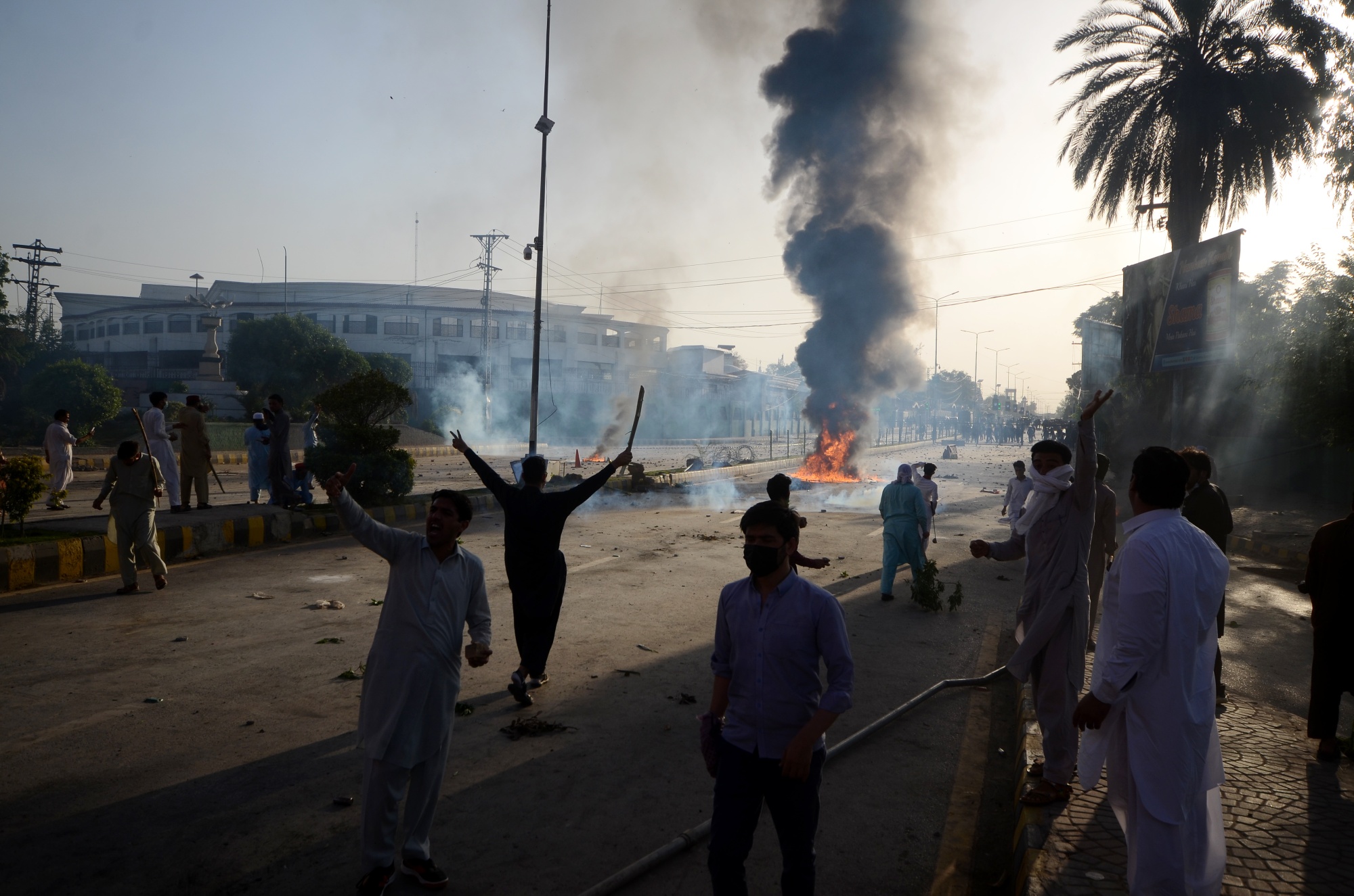卡恩的政党报告称至少有四人在不同冲突中丧生,20人受伤。抗议者还在巴基斯坦各地放火烧了至少三栋建筑物,而警方表示已逮捕了数十名支持者。内政部在该国部分地区暂停了移动宽带服务,而社交媒体上传播了对网络服务缓慢的抱怨。
