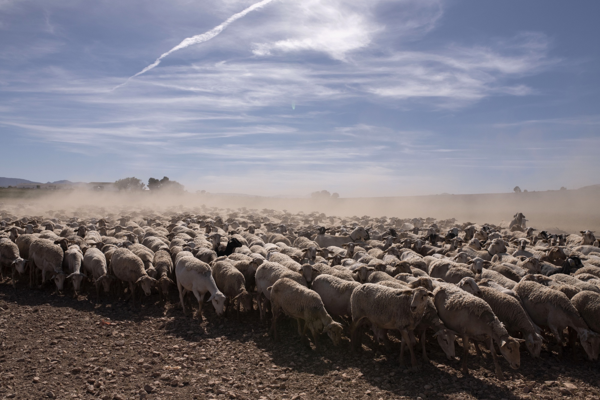 西班牙,穆尔西亚省卡拉瓦卡德拉克鲁斯,2023年4月26日,一群羊在吃草。摄影师:玛丽亚·康特雷拉斯·科尔/彭博社西班牙宣布了一项价值22亿欧元(24亿美元)的援助计划,以帮助农民并改善水利基础设施,因为该国连续第二年面临严重干旱。