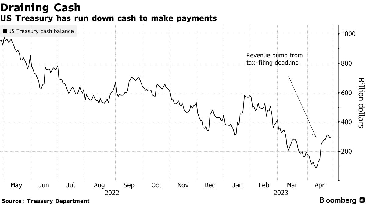 债务上限对峙:如果美国财政部现金用完会发生什么?- 彭博社